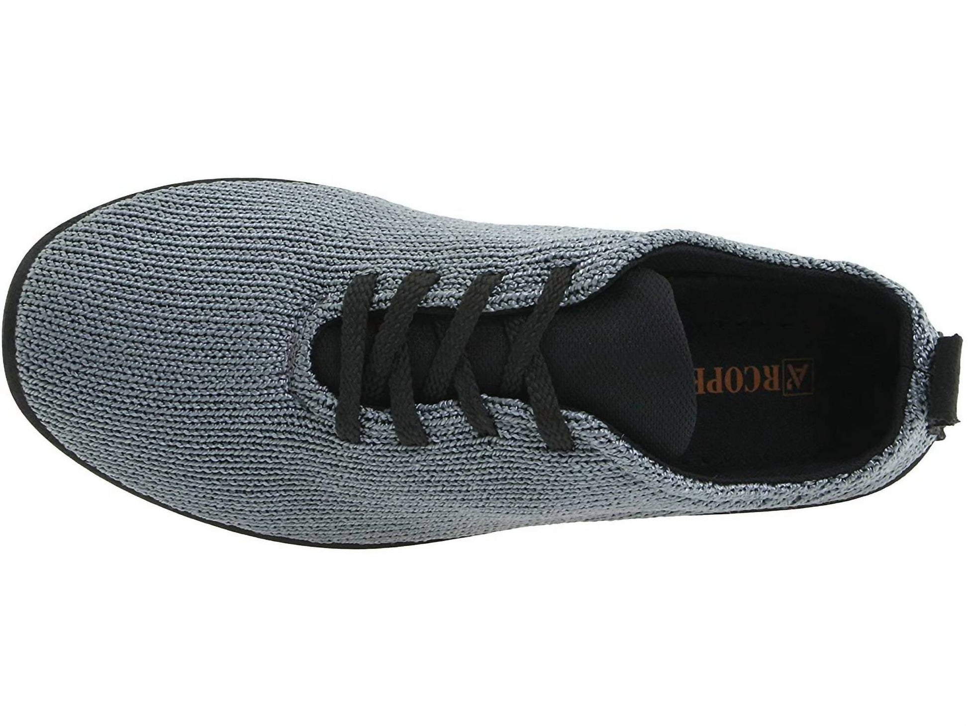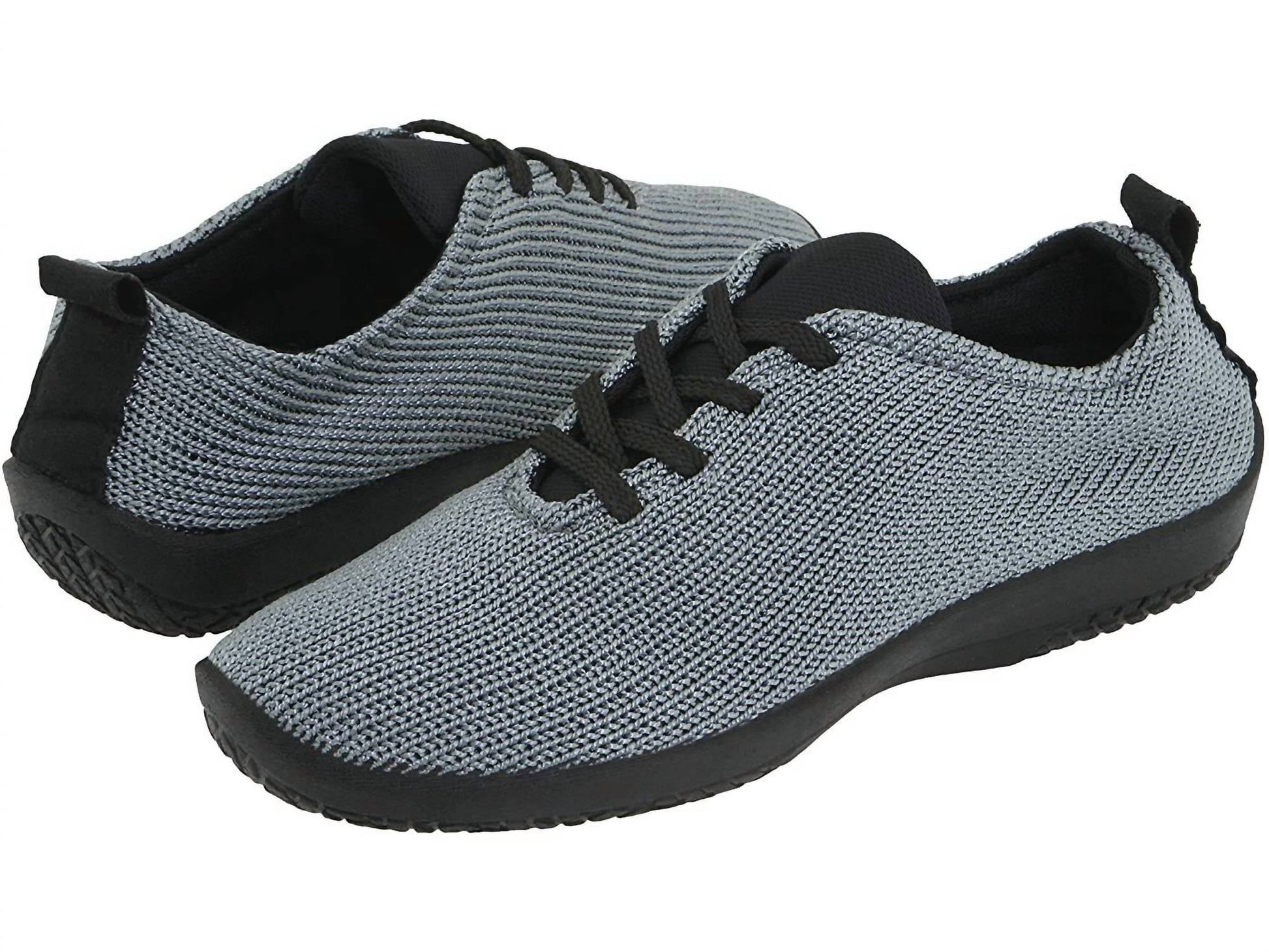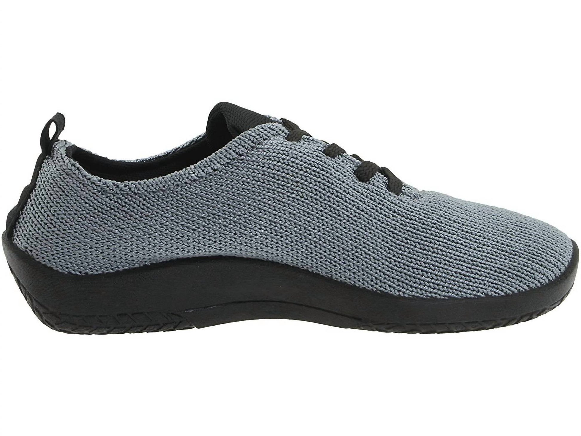Introducing the Women's LS Lace-up Shoe by Arcopedico, a must-have for travel and everyday ease. Available in a chic titanium color, this sneaker features a flexible knit upper that molds to your foot for ultimate comfort and support. The lace-up design ensures a customizable fit, making it perfect for problematic feet. Designed with a round toe and flat heel, this shoe is the minimalist choice for the summer season. Embrace effortless style and comfort with Arcopedico.