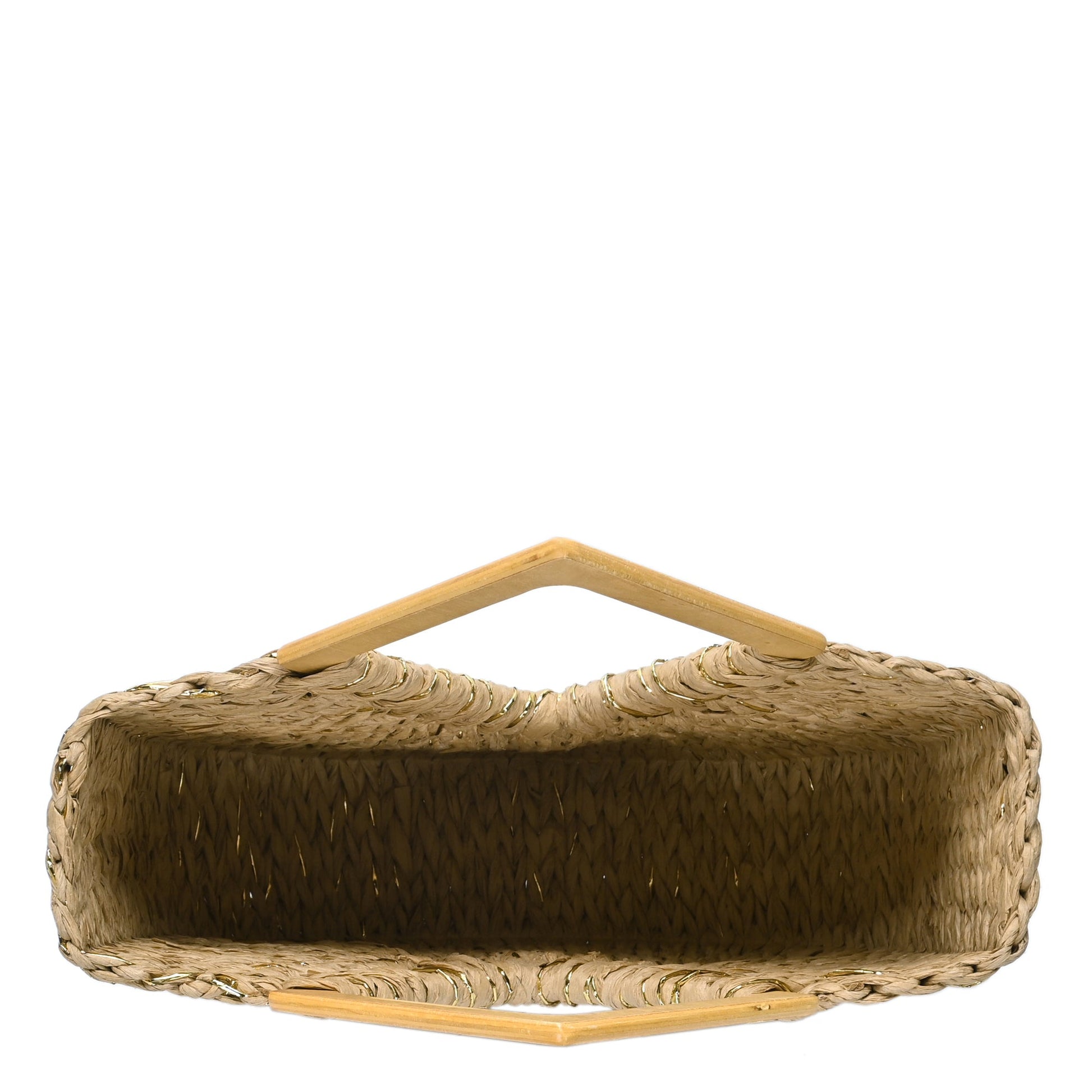 Introducing the Aria Tote, an elegant blend of beauty and practicality. Crafted from shimmer-enriched straw, this grand tote is both attractive and resilient. But the real showstopper is its substantial wooden handles offering the ideal combination of comfort and refinement. From beach excursions to a leisurely urban walk, the Aria Tote will upgrade your look while ably accommodating all your must-haves.