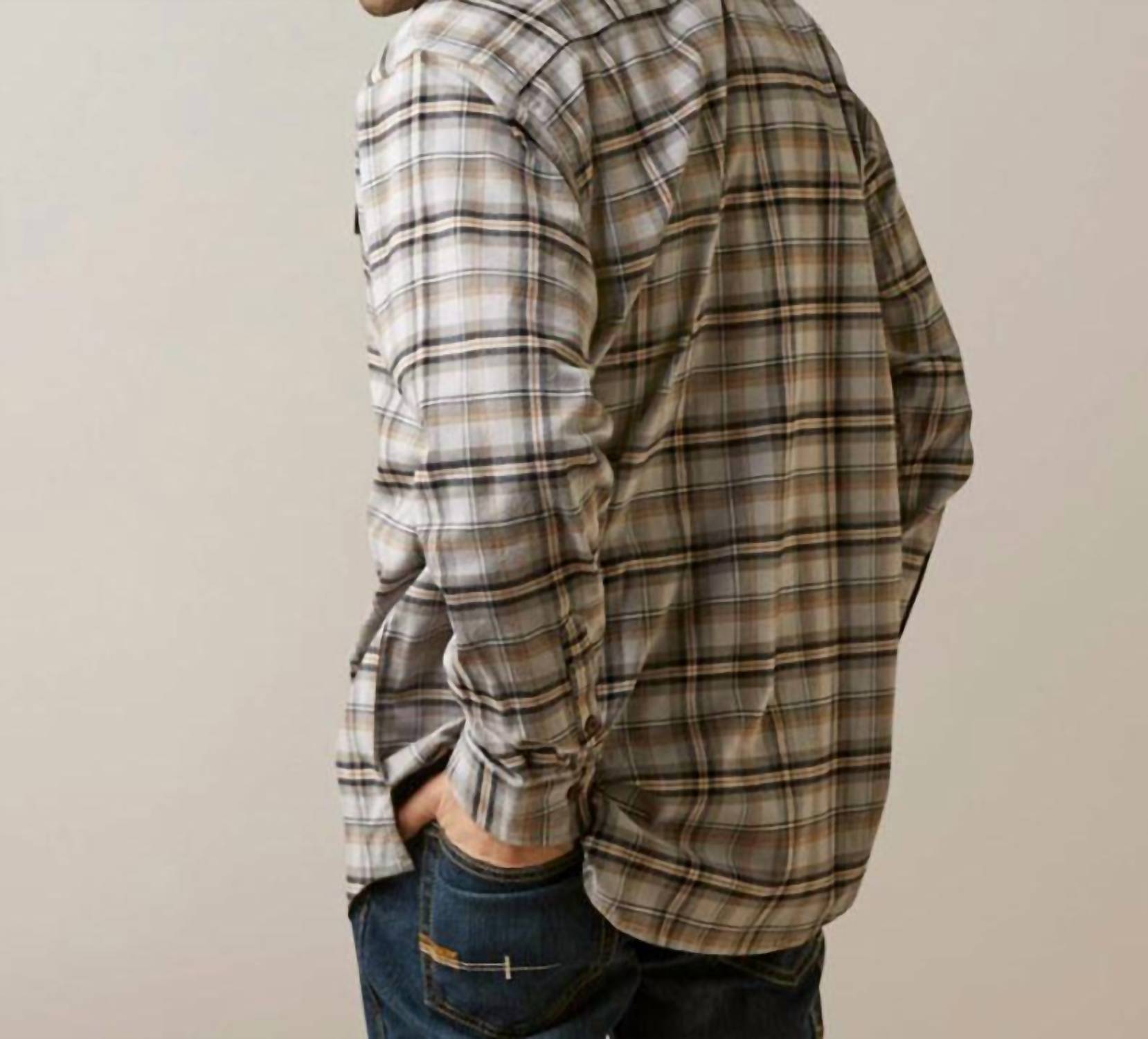 This plaid and check pattern shirt features long sleeves and a classic collar, offering Greater Arm Mobility™ for maximum ease of movement. Equipped with a button front closure, the shirt boasts practical details like adjustable buttoned cuffs, two chest pockets with button closures, a hidden zip pocket at the left chest, and a hidden pen/pencil slot. With its thoughtful design, this shirt is an essential addition to any casual wardrobe. 97% cotton, 3% spandex.