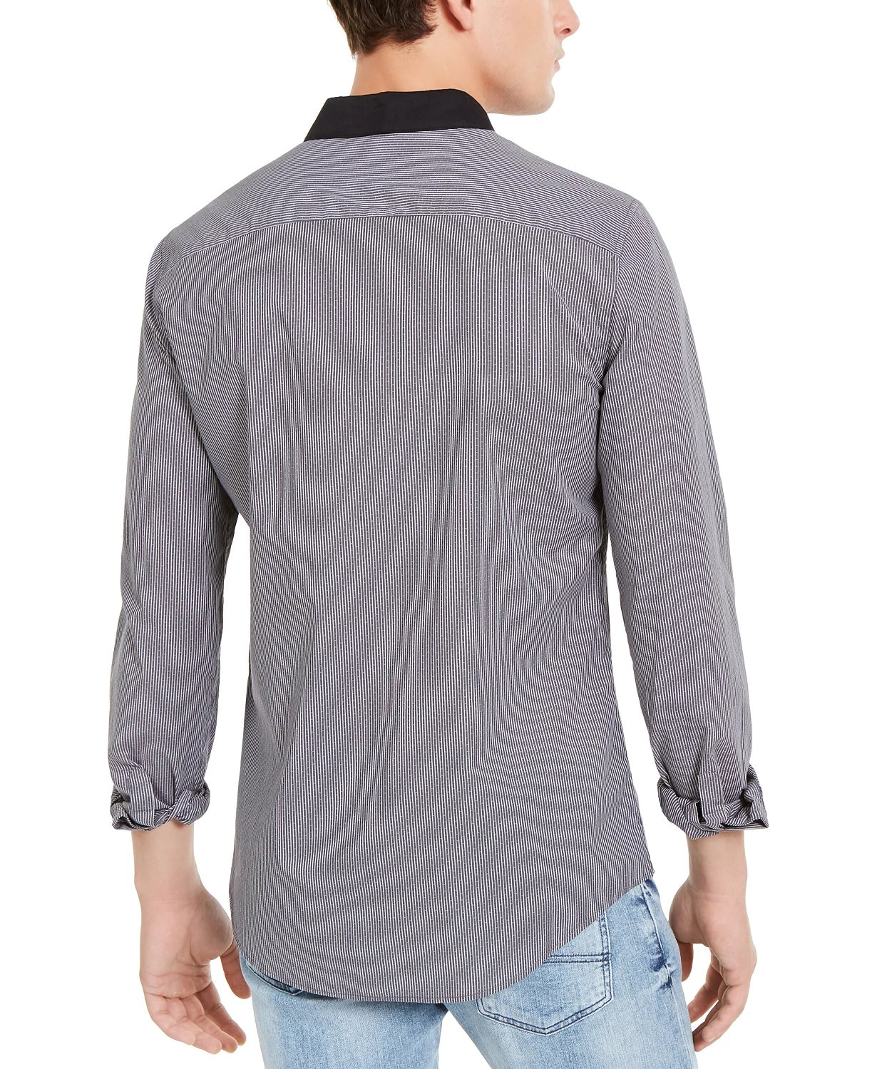 Camisa Masculina Armani Exchange Slim-Fit Dobby Stripe Gola Contrastada Cinza Tamanho Médio