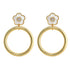 Introducing the Boboli Hoop Earrings by ASHA, an exquisite pair adorned with a mother of pearl flower top accentuated by a cubic zirconia center. Crafted from 14k gold, these elegant earrings feature a drop gold hoop design, adding a touch of sophistication to any ensemble. Measuring 2.5 inches in length and 1.75 inches in width, they are the perfect fine jewelry piece for a graceful finish.
