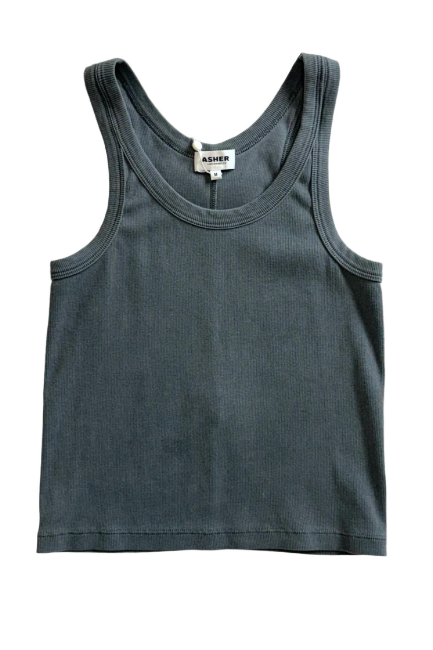 This classic, short sleeve tee will be your go-to staple this season and beyond. The Women's Sara Tank Top by Asher is a chic addition to your summer wardrobe, offering minimalist elegance in a classic black hue. Designed with a sleeveless cut, it features a small scoop neckline for a subtle, structured look. Made from garment-dyed cotton and enzyme & silicone washed for a luxuriously soft feel, this top is crafted with care right in LA. Closure: Pull-on design. Care: Machine wash, tumble dry for effortless maintenance.