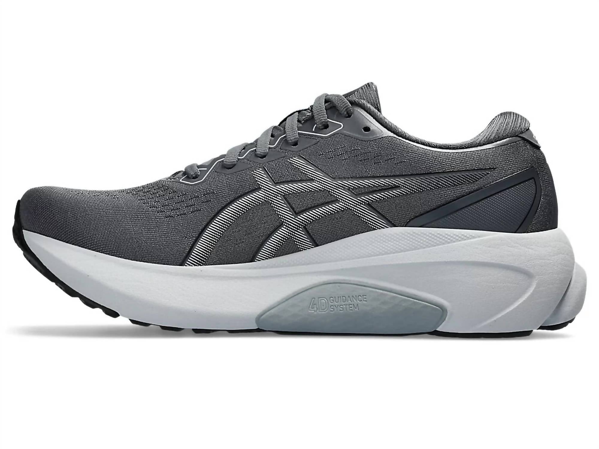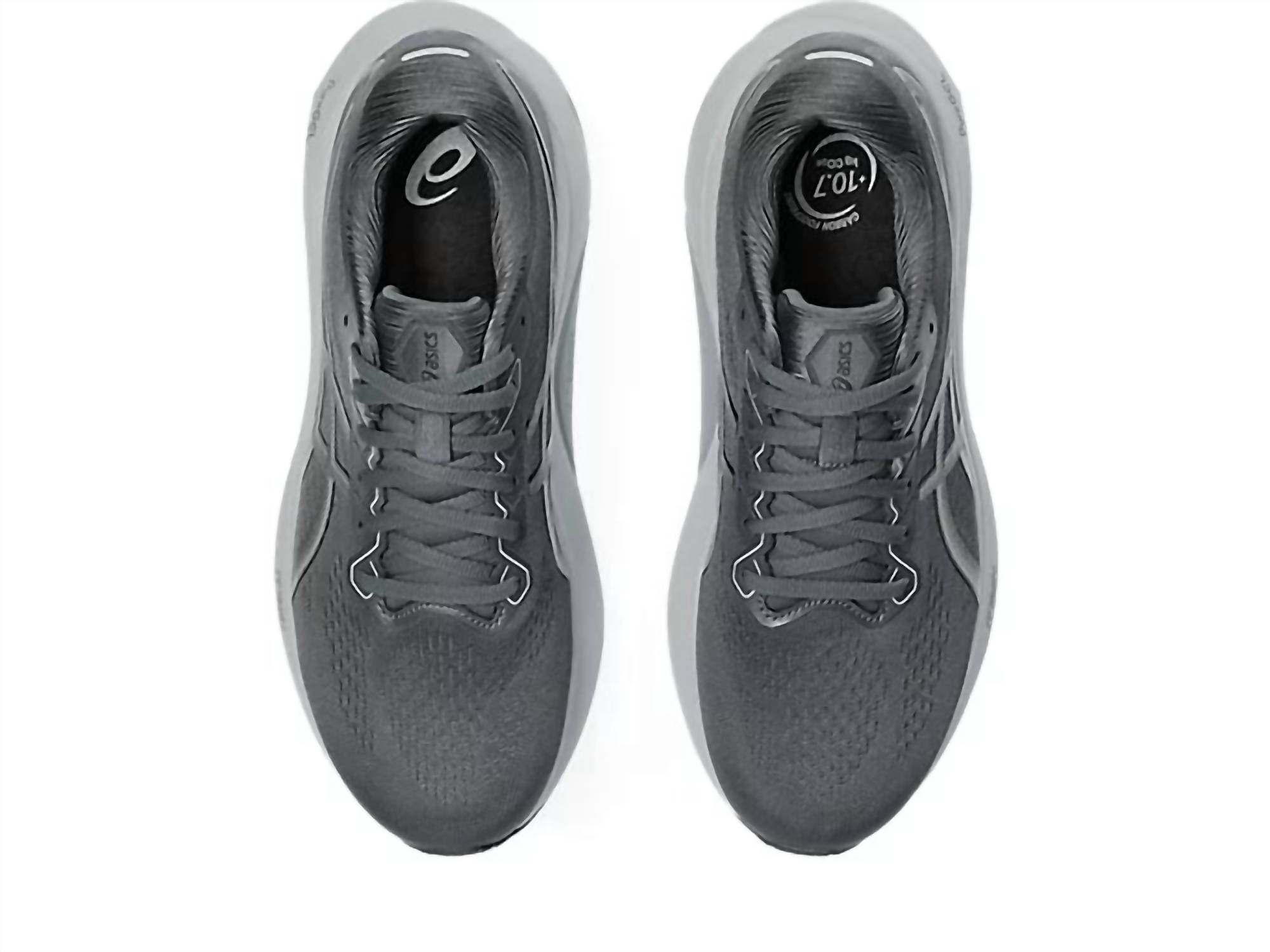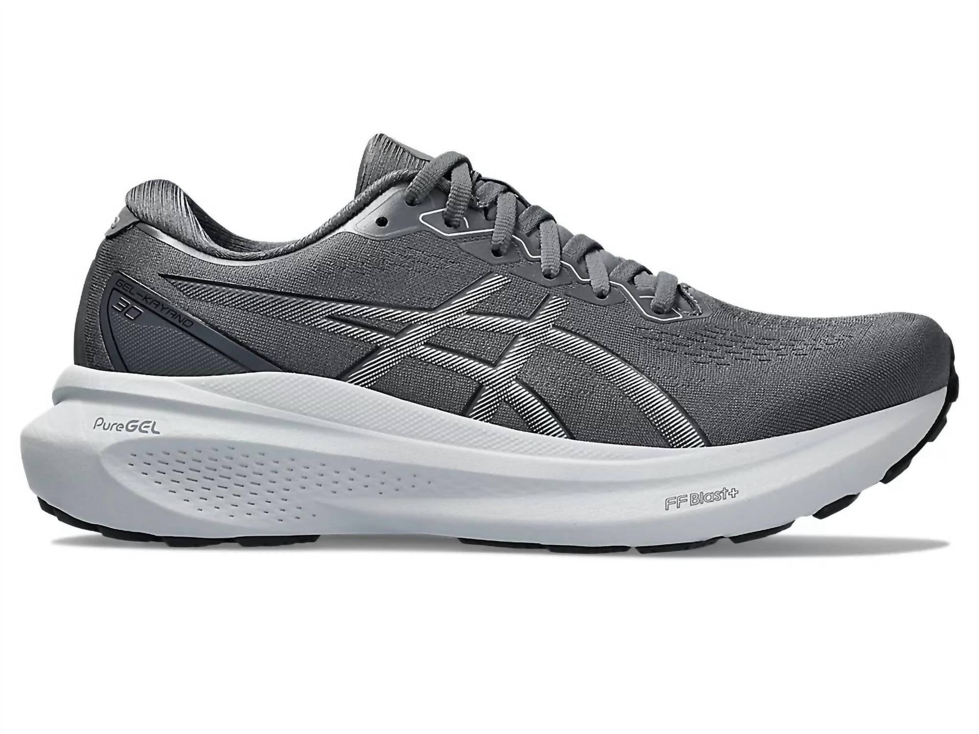 Introducing the ASICS Men’s Gel Kayano 30 Carrier Shoes, designed to elevate your performance from 5Ks to marathons. In Piedmont Grey, these shoes offer superior stability with the 4D GUIDANCE SYSTEM™ for balanced strides and FF BLAST™ PLUS ECO cushioning for cloud-like comfort. PureGEL™ technology, 65% softer than standard GEL™, ensures each step is smooth and comfortable. Ideal for Game Day, these athleisure shoes are perfect for the summer season, featuring a medium width and flat heel for a classic look.