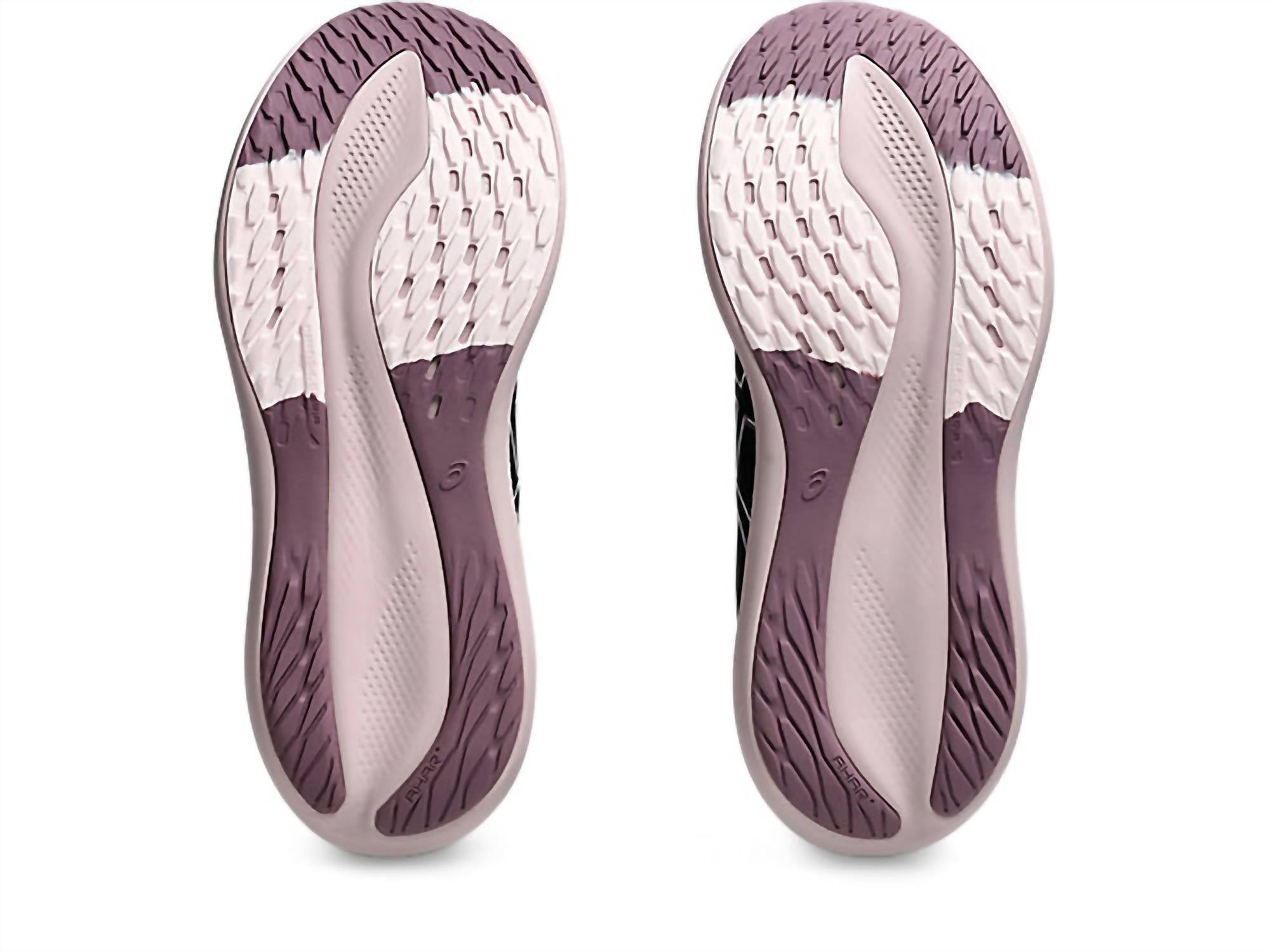 When fashion meets function. Introducing the ASICS Women's Glideride Max Running Shoes in a sleek Birch/Black colorway, perfect for your summer athleisure wardrobe. These athletic shoes are equipped with innovative FF BLAST™ MAX cushioning for unmatched responsiveness and cloud-like comfort throughout your run. The GUIDESOLE® technology with its rockered sole design ensures a smooth, effortless toe-off with every step. Ideal for fitness or workout sessions, these shoes feature a flat heel with a norm heel height of flat (1" & under), complemented by a round toe shape.