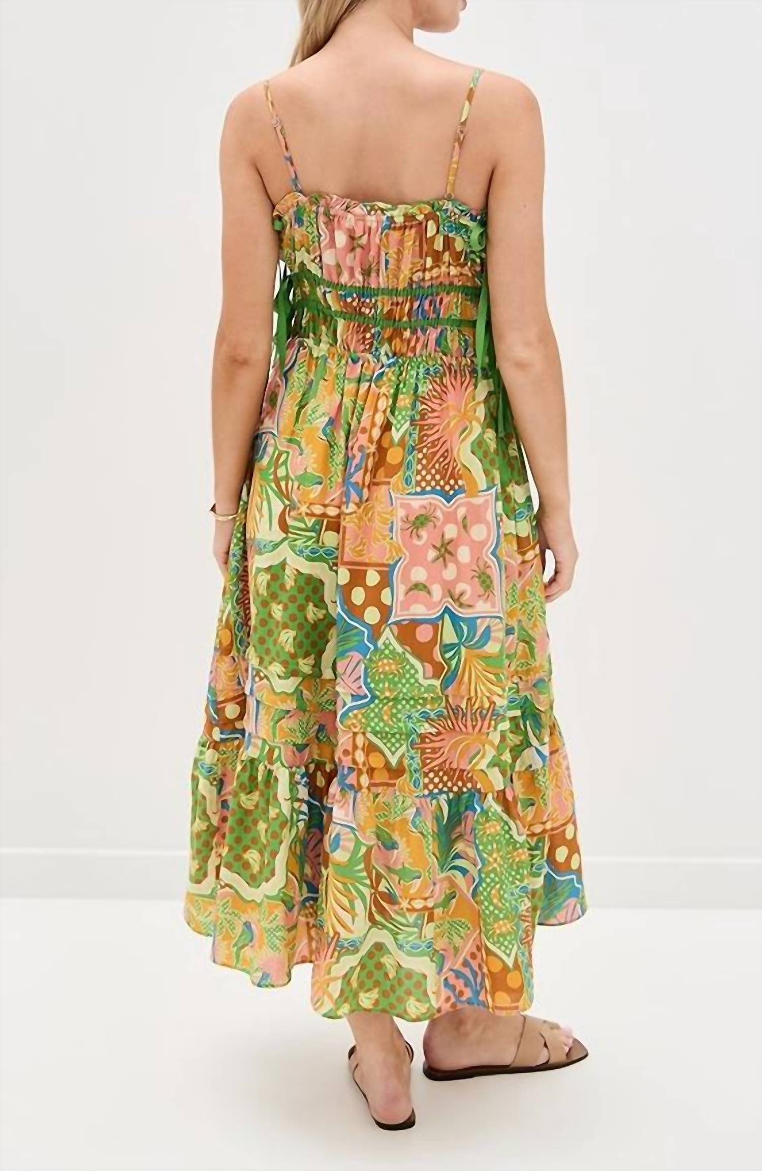 Discover the Elisabeth Dress by ASTR, a statement piece in Mosaic Green Multi, perfect for your holiday party wardrobe. This midi dress features adjustable spaghetti straps and a flattering elastic waist, enhanced with unique green self-ties on the sides. Crafted from a luxurious 95% Lyocell, 5% Linen, it provides a stylish A-line silhouette with convenient pockets. The dress's tie closure accentuates its boho-chic appeal, while maintaining elegance with a squareneck design. Garment length is 51.5 inches and it is recommended to dry clean only.