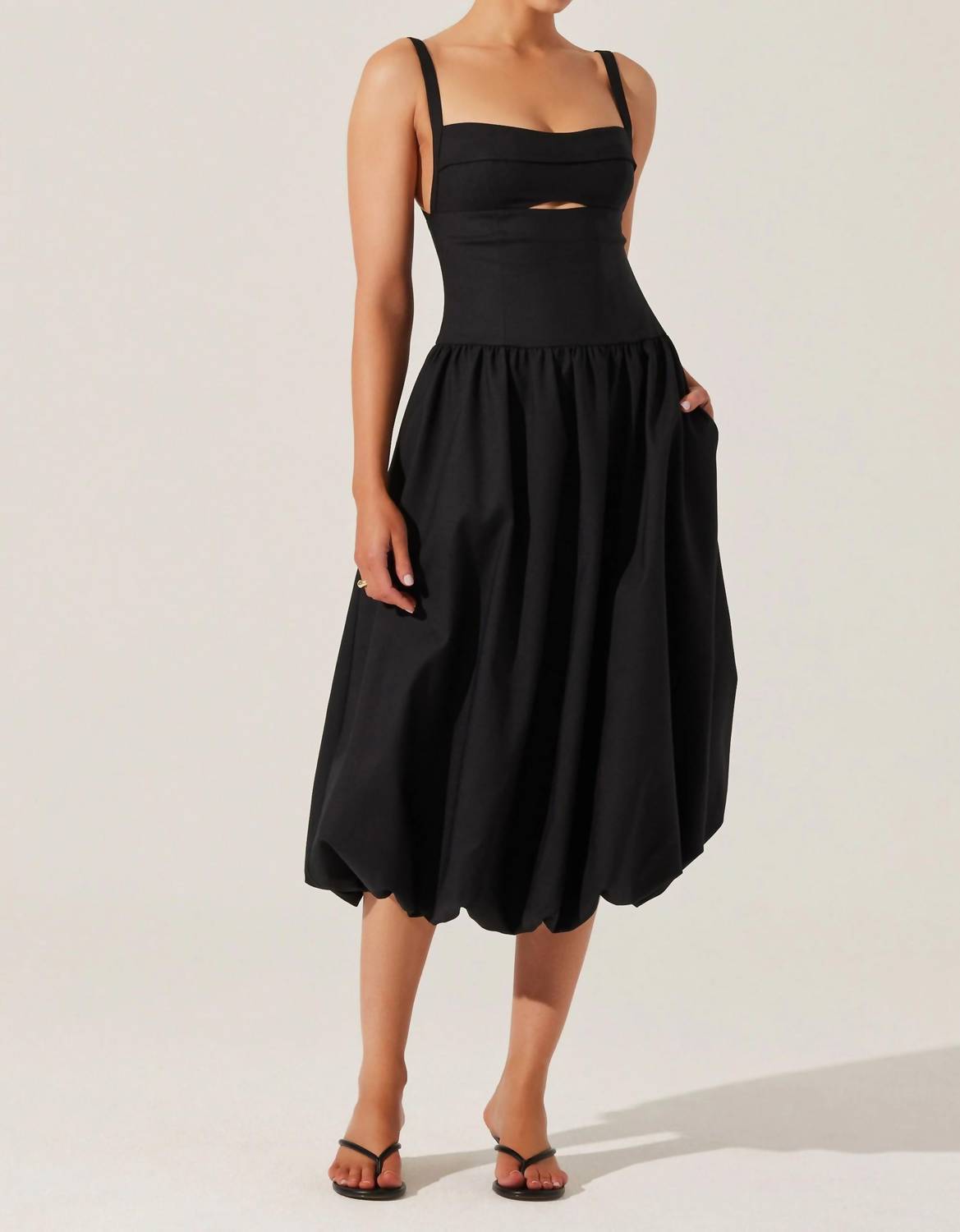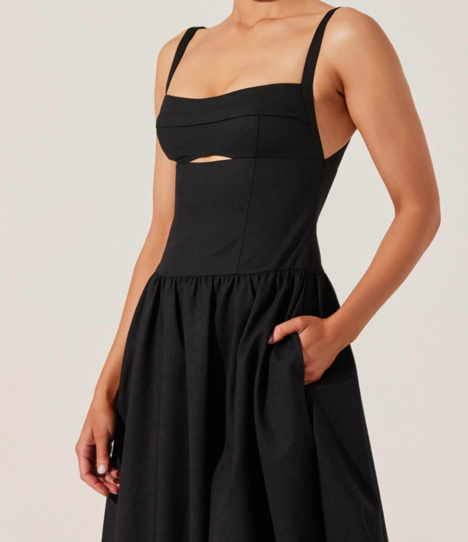 A midi dress so versatile, your options for wearing it are endless. Introducing the Jevi Midi Dress by ASTR, an elegant addition to elevate your wardrobe. This sleeveless dress is crafted from a comfortable cotton blend composed of 50% cotton, 45% nylon, and 5% elastane. Its design features a bubbled hem and a sophisticated squareneck with a cutout detail. With a hidden zip closure at the back, it offers practicality with side-seam pockets and is imported. Perfect for a minimalist, dinner party look, this fit and flare silhouette should be dry cleaned. Model wears size small, true to size.