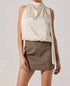 The Joleisa High Neck Top by ASTR is a stunning piece crafted from 100% Polyester that effortlessly elevates any ensemble. This sleeveless satin top in a soft champagne hue features an adjustable tie neck scarf and a chic draped front, complemented by a keyhole cutout at the back with a button/loop closure. Designed with a fully lined elasticized hemline for a flattering fit, it's perfect for dressy occasions. Care for it by dry cleaning only, ensuring its elegance lasts.