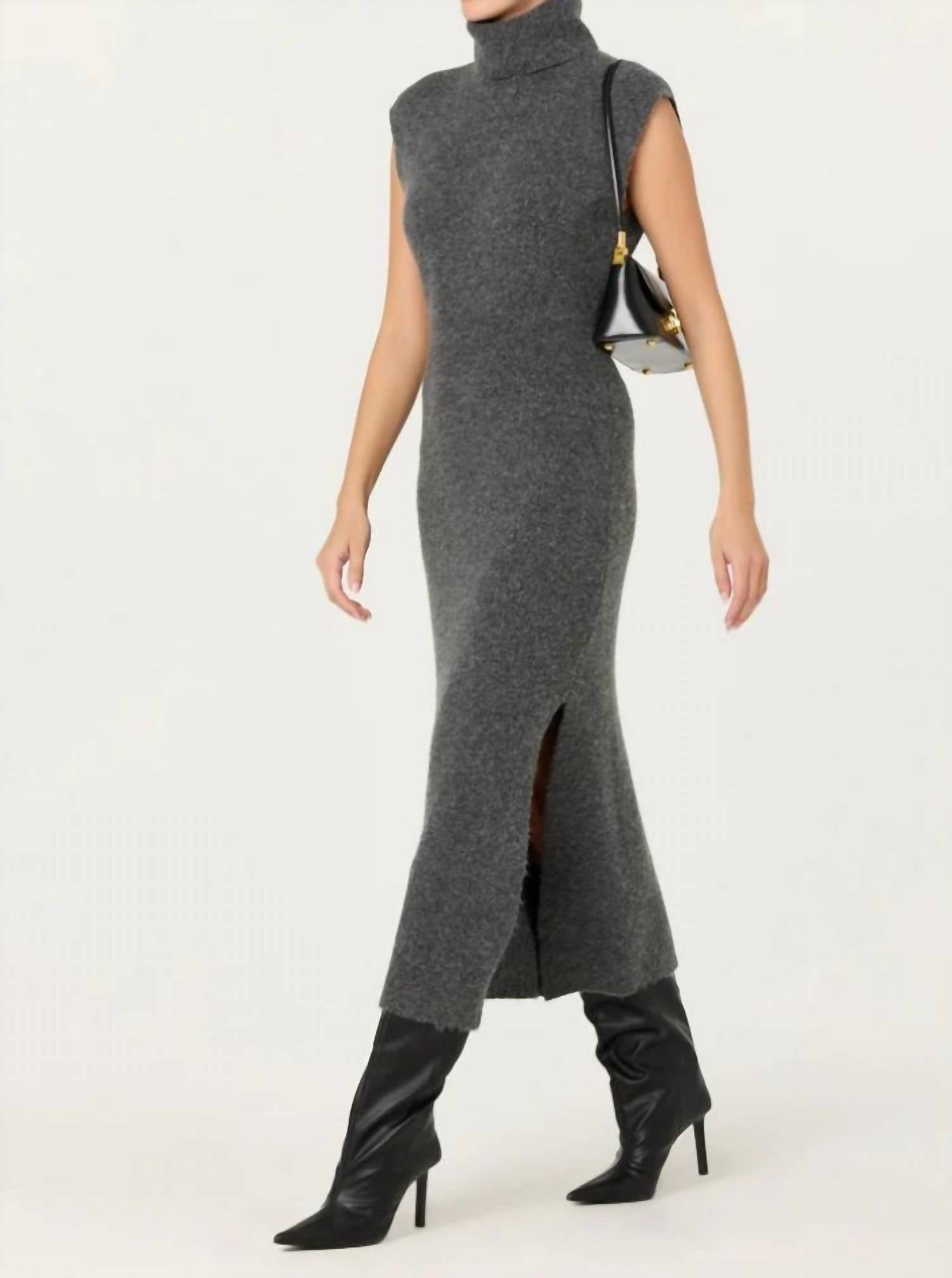 A midi dress so versatile, your options for wearing it are endless. Meet the Roxanna Charcoal Sweater Dress by ASTR, an effortlessly chic piece perfect for fall and winter. This sleeveless, turtleneck midi dress is crafted from a soft blend of 79% Polyester, 9% Nylon, 8% Wool, and 4% Elastane, ensuring a flattering silhouette. Designed for both casual days and dinner parties, its pull-on style offers comfort and ease. For care, opt for a hand wash in cold water or dry cleaning.