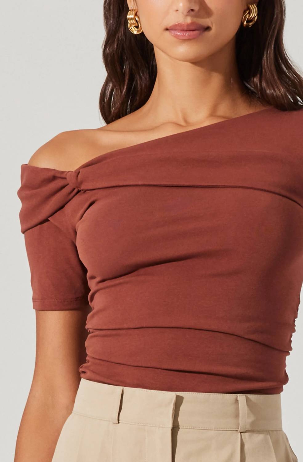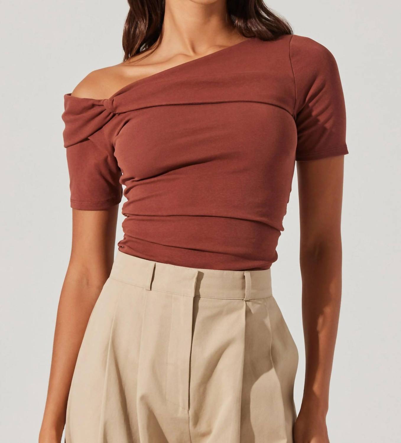 Pair this with your favorite jeans and slides for your next girls night out. Elevate your basics with the Saylah Off Shoulder Twist Top by ASTR the Label, a chic addition in classic cream. This top features short sleeves, an off-the-shoulder neckline with a distinctive knot detail, and soft side ruching for a body-hugging fit. Crafted from a comfortable 93% Cotton and 7% Elastane blend, it promises effortless style for any occasion. Closure: Pull-on. Care: Hand wash and line dry. Model is wearing size small with a true-to-size fit.