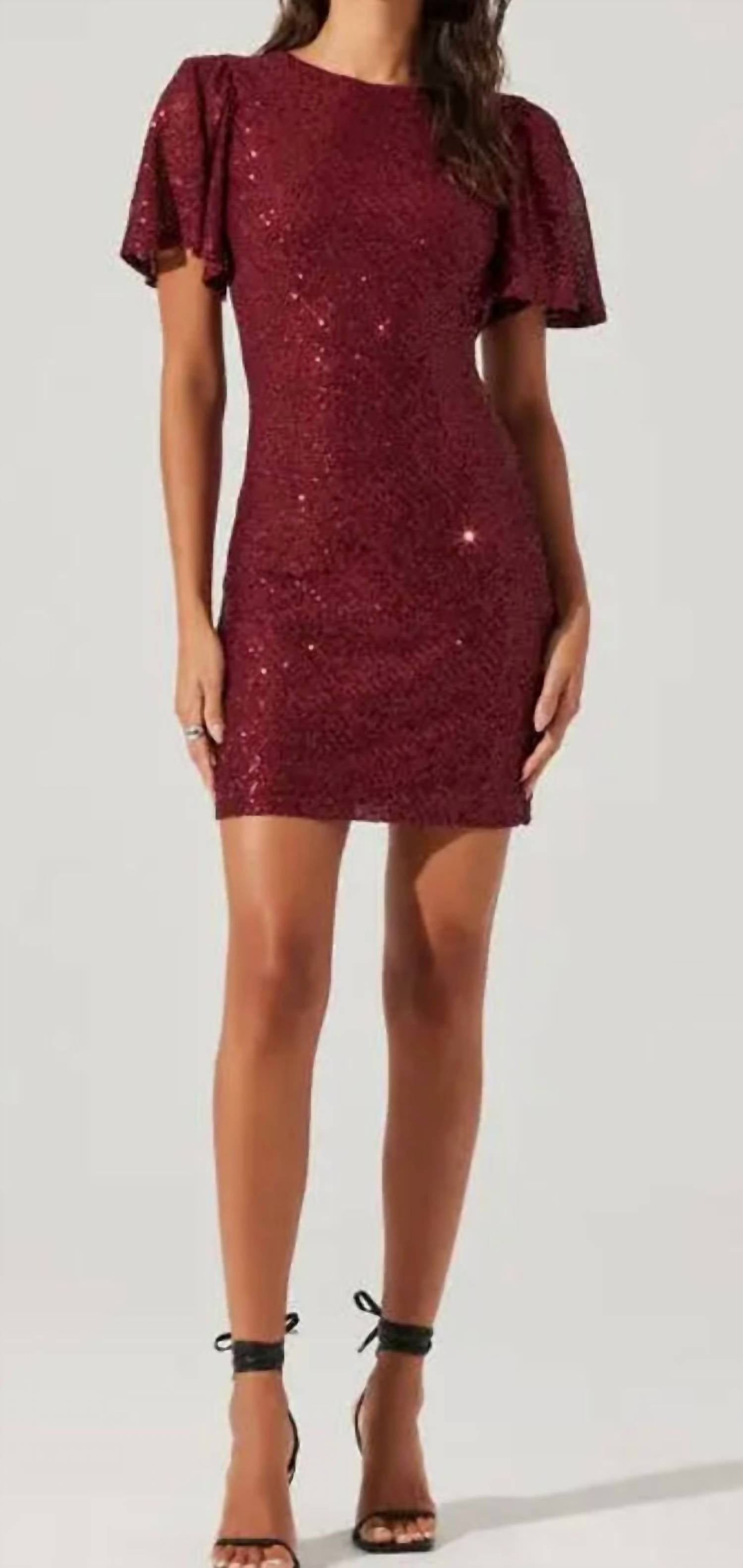 Make a dazzling entrance—and exit—in this sequin-covered mini dress, designed with flutter sleeves and a dramatic cowl-draped open back. Featuring a jewel neckline, V-back detail, and easy slip-on styling, it’s partially lined for comfort and crafted from 100% polyester, making it a stunning choice for cocktail parties and special nights out.