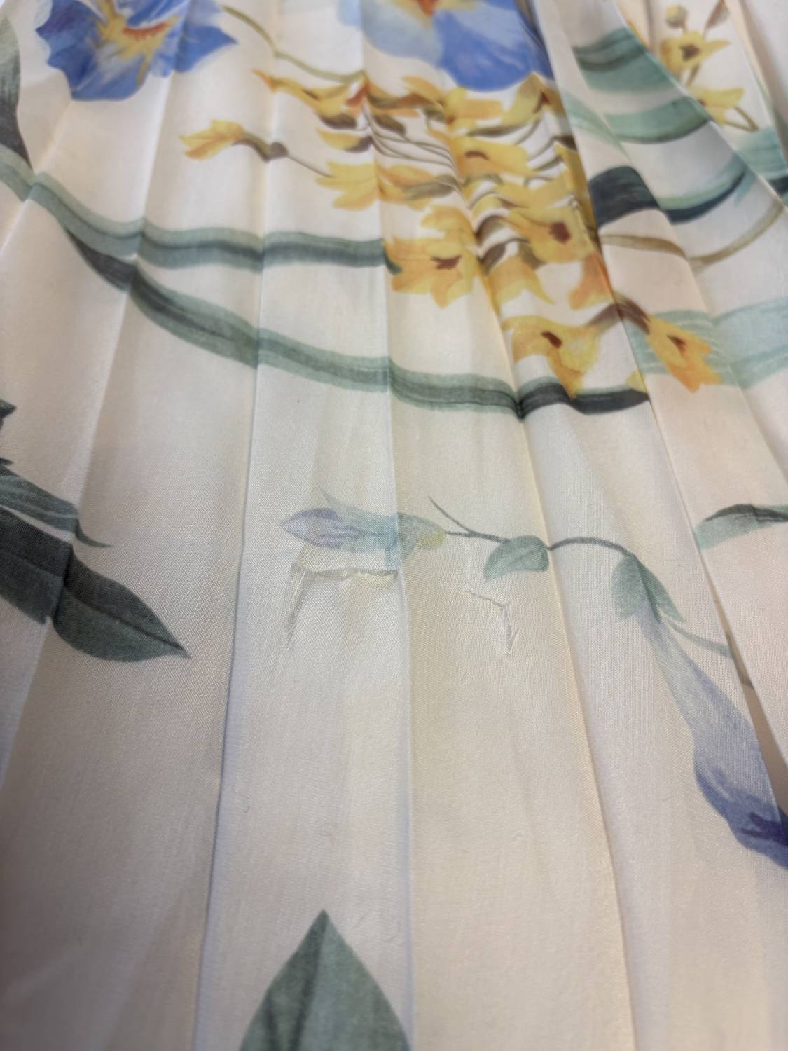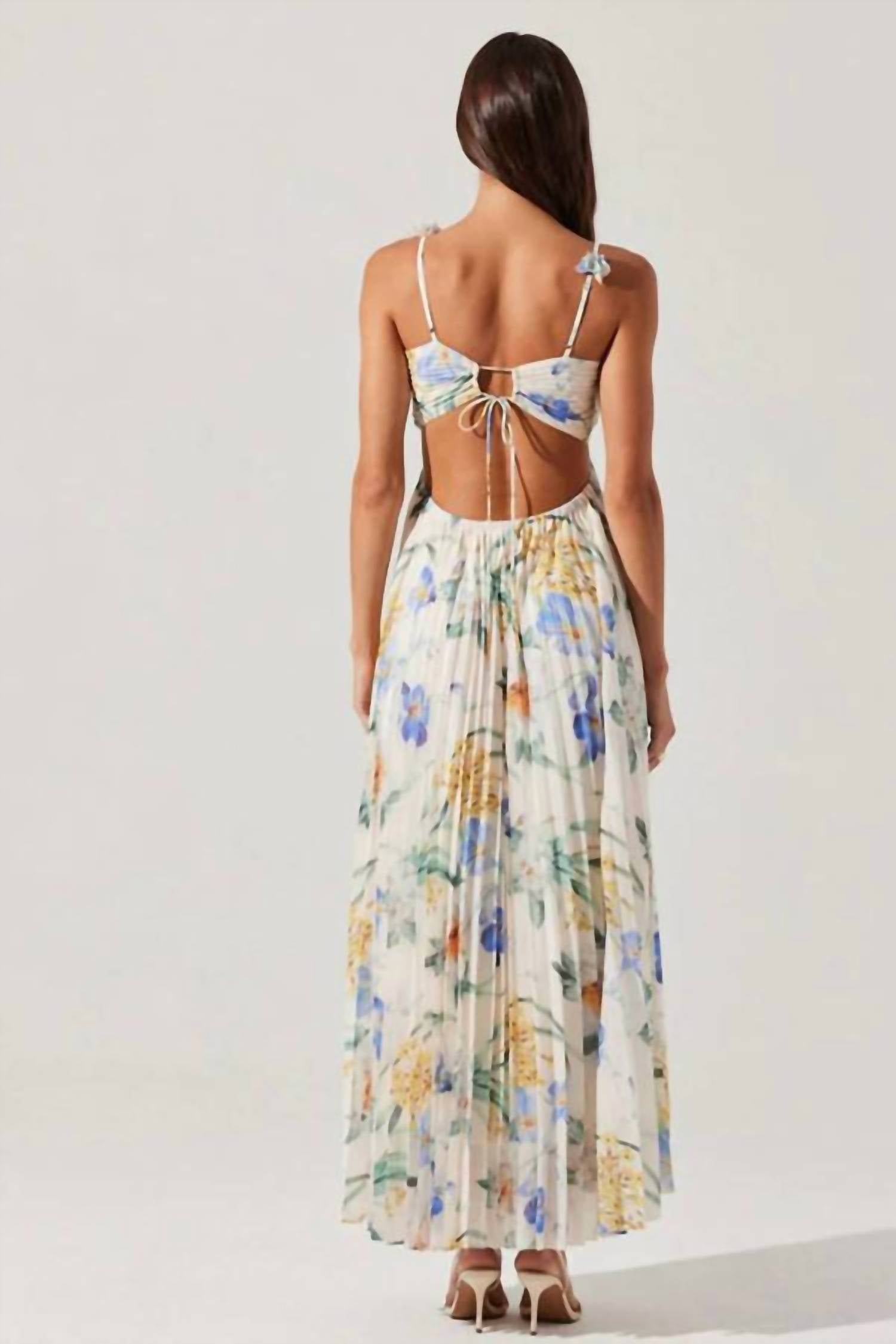 There is a small hole near the bottom of the dress. Embrace boho chic elegance with the Emese Floral Pleated Maxi Dress by ASTR. This enchanting dress features spaghetti straps adorned with 3D flower appliques and a sweetheart neckline, perfect for an evening event or Thanksgiving gathering. Crafted from 100% Polyester with a 100% Cotton lining, it offers a comfortable fit with an elasticized back waistband and adjustable tie-back closure. Care for this floral marvel by dry cleaning, and enjoy the effortless style it brings to your spring wardrobe.