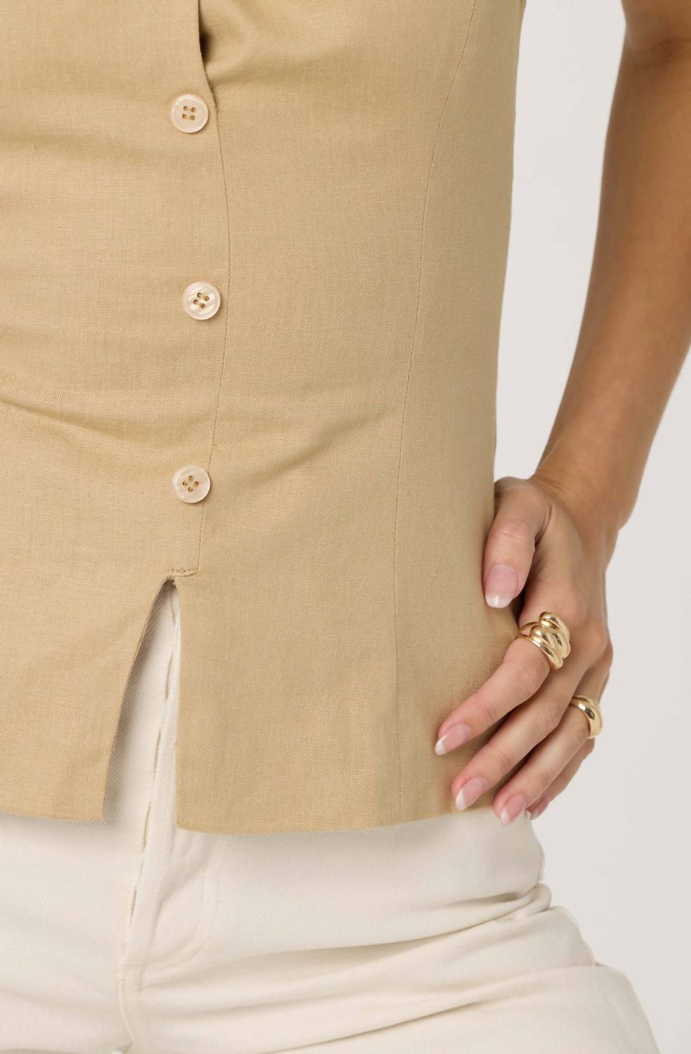 Um colete tão versátil que você pode misturá-lo e combiná-lo com quase qualquer roupa e ele parecerá novo em folha todas as vezes. Revele sofisticação com o Colete ASTR Yaritza, um item essencial para jantares e ocasiões especiais. Este colete marcante em preto clássico apresenta um design sem mangas com uma elegante gola halter e fecho ajustável, perfeito para um ajuste personalizado. A silhueta cruzada encanta com um detalhe de botão falso e um recorte na bainha frontal inferior, enquanto as costas franzidas garantem um caimento confortável e elegante. Confeccionada em uma luxuosa mistura de linho com estrutura totalmente forrada, esta peça requer cuidados de lavagem a seco para um uso duradouro.