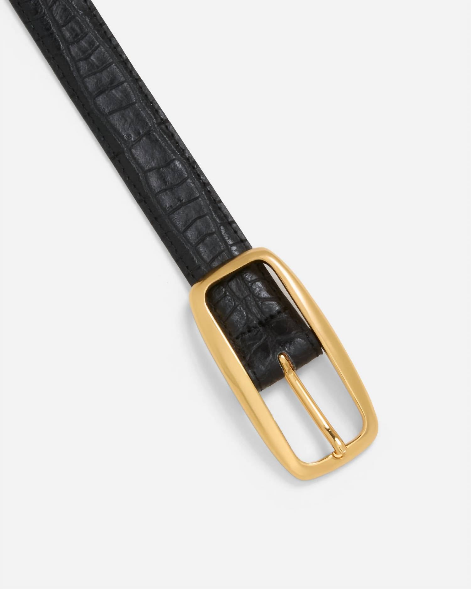 Upgrade your accessory game with this stylish and versatile belt that will tie any outfit together. This must-have accessory is classic in its design and will never go out of style. Explore sophistication with the Women's Leather Belt by Aureum, handcrafted in Italy from genuine Italian leather, bringing a touch of luxury to your wardrobe. This exquisite belt showcases a crocodile embossed design in Tuscan Croc & Gold, accented by a custom molded silver tone buckle. With an adjustable fit through its 5 holes, the belt offers a strap width of 1" (3 cm) for both comfort and style. Elevate any outfit effortlessly with this timeless piece.