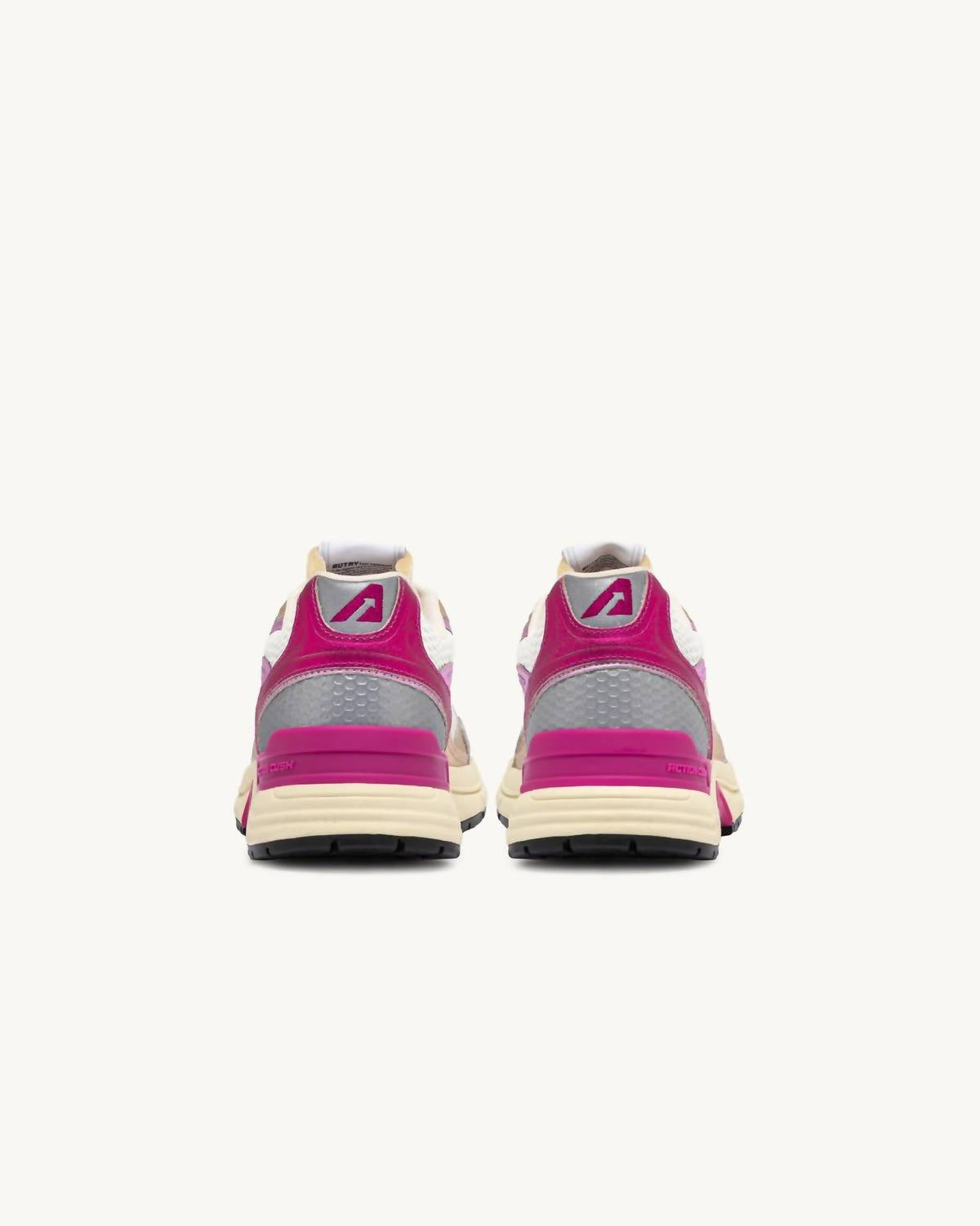 Step into the future of athleisure with the Women's Hyperway Sneakers by AUTRY, where running style meets urban inspiration. These fuchsia sneakers feature a sophisticated combination of laminated leather, suede, and breathable mesh uppers for a unique blend of comfort and style. Designed with AUTRY's Action Cush technology, the PI sole with a 3.5 cm height ensures optimal cushioning and support, complemented by a TPR stabilizer for stability. Ideal for fitness or workout activities during the fall, these athletic shoes are crafted to keep you comfortable and stylish.
