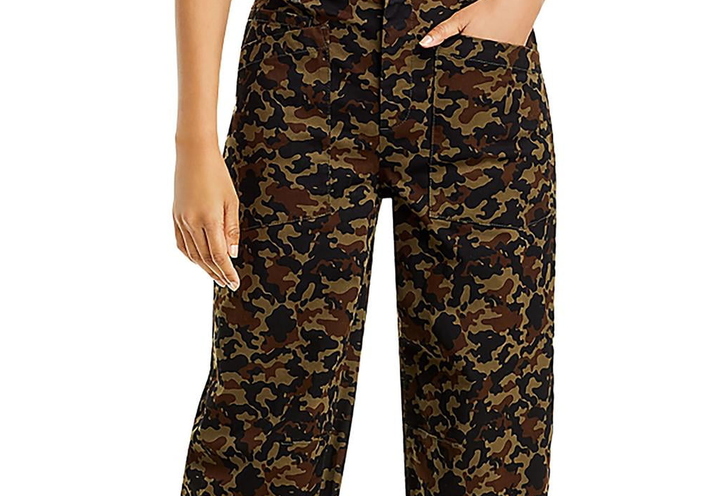 Calças femininas de perna reta | Relaxadas | Camuflagem | Afuniladas | Calças femininas afuniladas | Material: 97% algodão/3% elastano | Paquistão