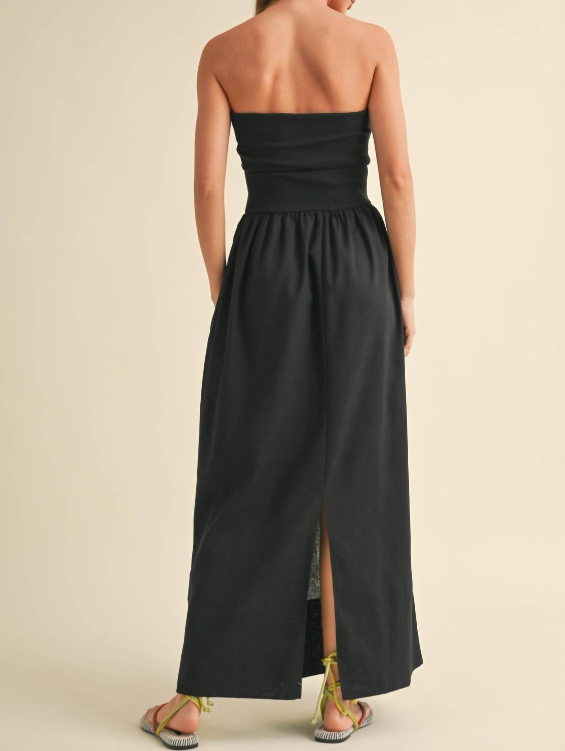 Elevate your summer travel wardrobe with the Avenue Cassidy Linen Dress, a must-have in sleek black. This strapless A-line silhouette features a blend of 70% polyester and 30% linen for breathable comfort and effortless style. Designed without visible closures, it offers a pull-on convenience and includes practical pockets. For care, hand wash and line dry to maintain its pristine condition.