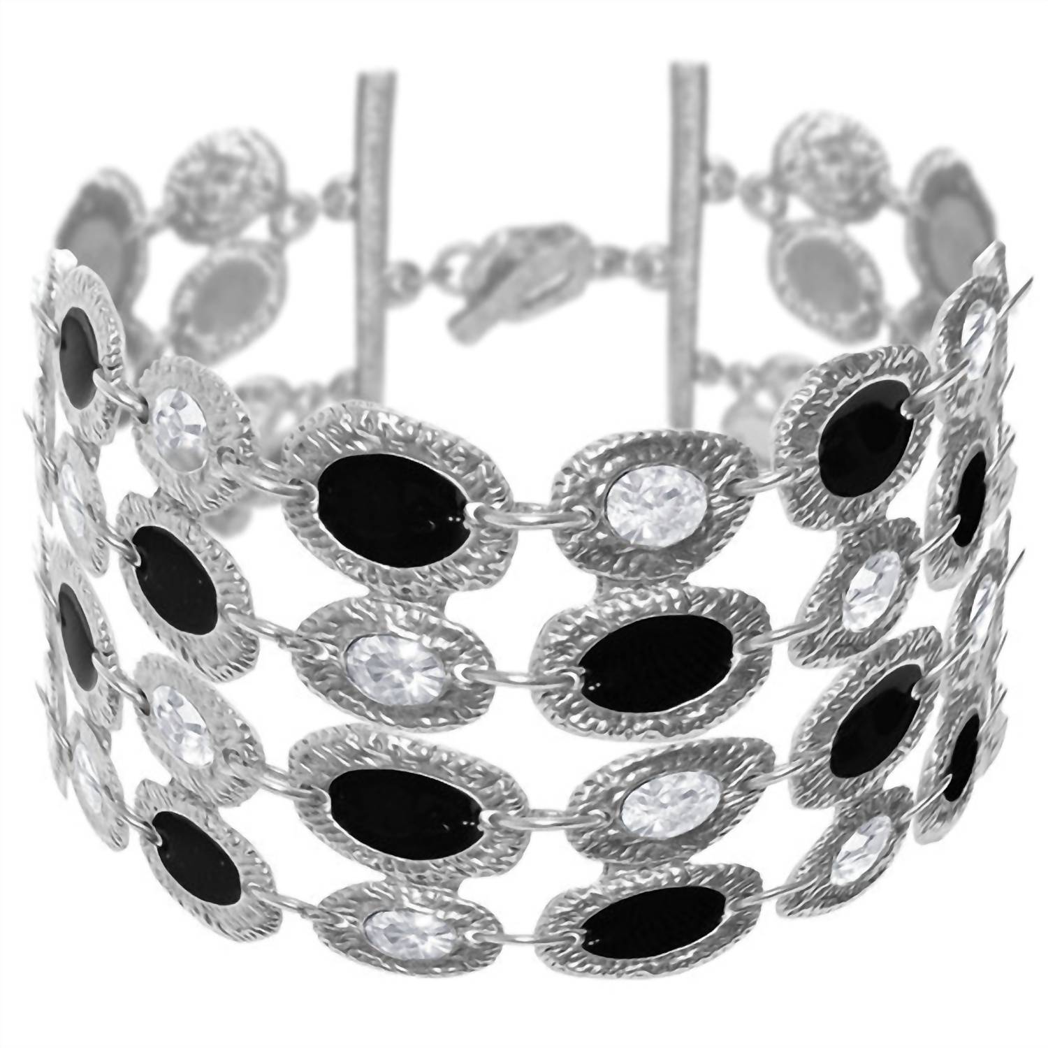 Enhance your wrist with the Women's Andrea Bracelet by Avenue Chic, a stunning accessory in elegant silver. Featuring a fashion-forward design, this bracelet is adorned with bezel-set oval cubic zirconia stones, adding a touch of timeless glamour. The stones are white/colorless simulants, offering a luxurious sparkle without the cost. Crafted with silver plating for a sleek finish, this piece effortlessly elevates any ensemble.