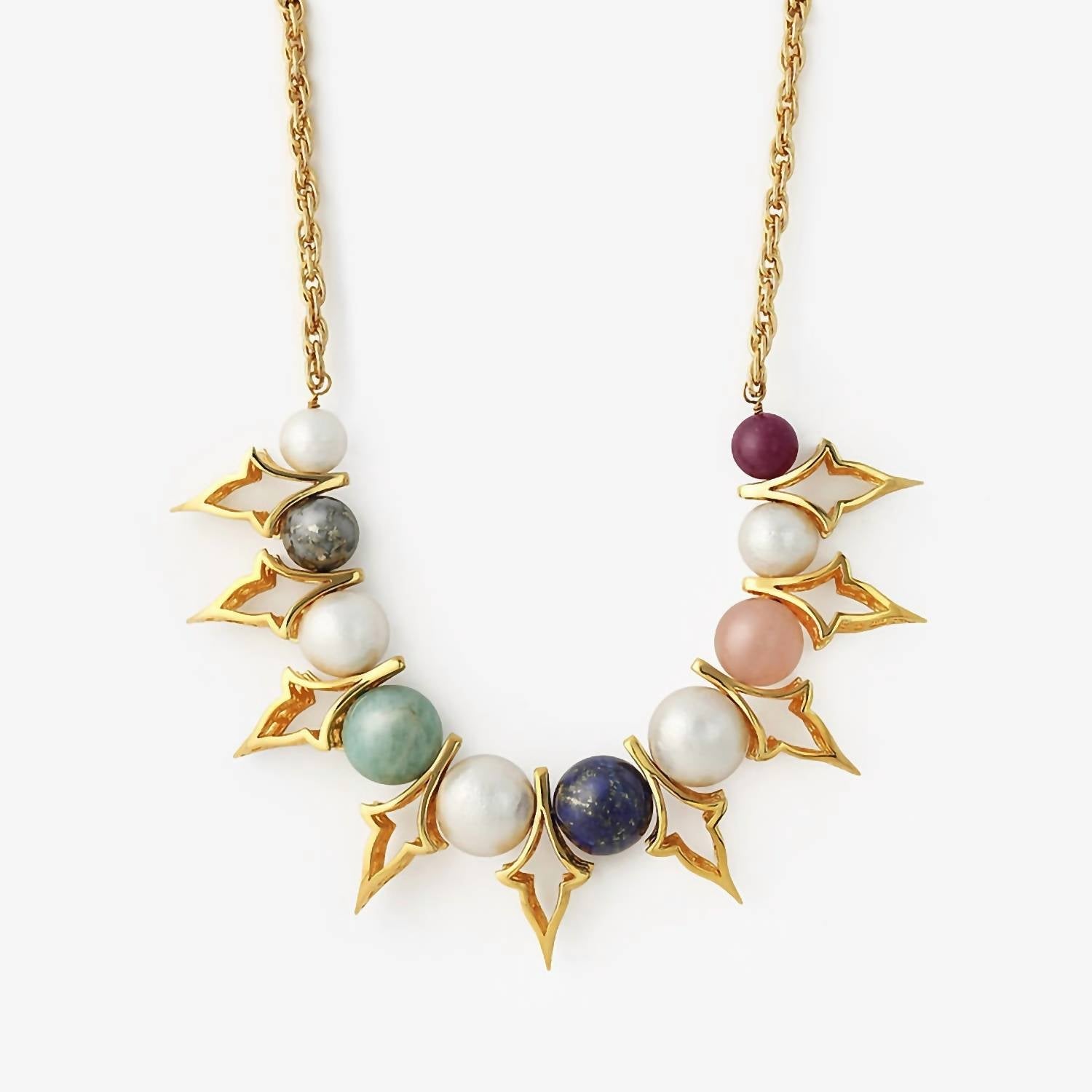 Elevate your jewelry collection with the Women's Temple Muse Necklace by Avenue Chic, a striking accessory in lustrous gold. This costume necklace features natural pearls and a multicolor gemstone setting, adding a touch of sophistication to any ensemble. Ideal for those who appreciate unique, vibrant designs. Crafted with attention to detail, this piece embodies elegance and style.
