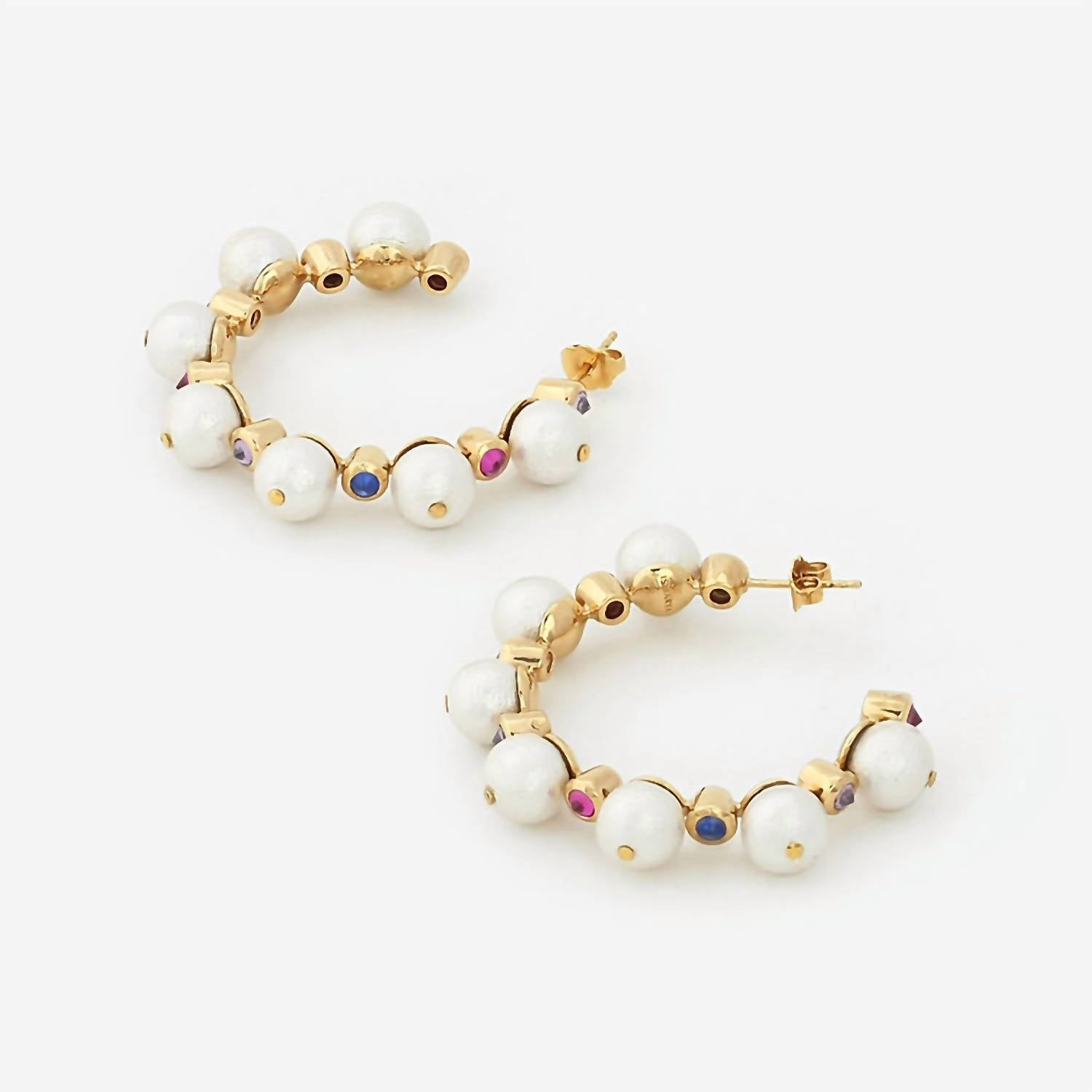 Elevate your accessory collection with the Women's Temple Muse Pearl Hoop Earrings by Avenue Chic, featuring a timeless design in lustrous gold. These costume earrings showcase natural pearls, enhancing their elegance with a touch of white gemstone radiance. Ideal for adding a sophisticated finish to any ensemble, these earrings are a must-have for those who appreciate refined jewelry pieces.