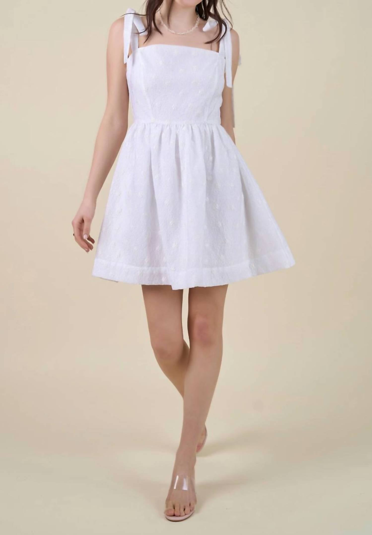 Introducing the Floral Tie Shoulder Mini Dress by B.right, a chic addition to your winter wardrobe. This women's sheath dress in white features a sleeveless design with stylish tie shoulders and a flattering squareneck silhouette. Perfect for a holiday party, its zip closure ensures a seamless fit. Elevate your Christmas look with this vintage-inspired essential.