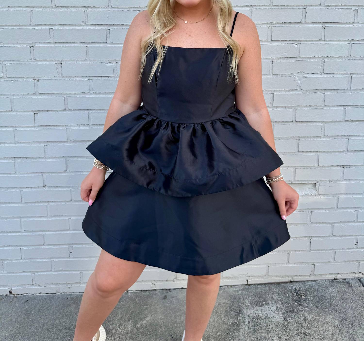 Elevate your evening look with the Karli Tiered Ruffle Bubble Mini Dress by B.right, a stunning choice for any festive occasion. Featuring delicate spaghetti straps and a flattering fit and flare silhouette, this mini dress boasts a solid black color ideal for a minimalist style. With its summer-ready squareneck design, it effortlessly combines elegance and comfort. Perfect for Thanksgiving festivities, this piece offers a chic and sophisticated look for any evening event.