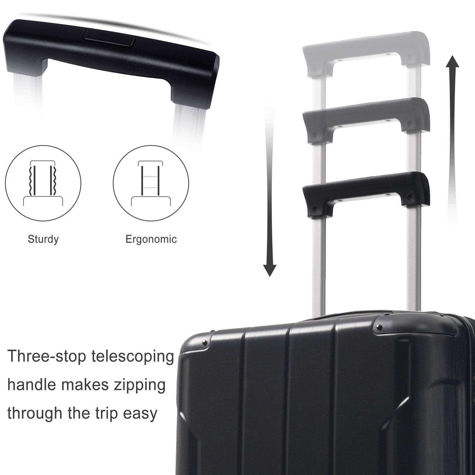 • Three-level telescopic handle for adjustable comfort