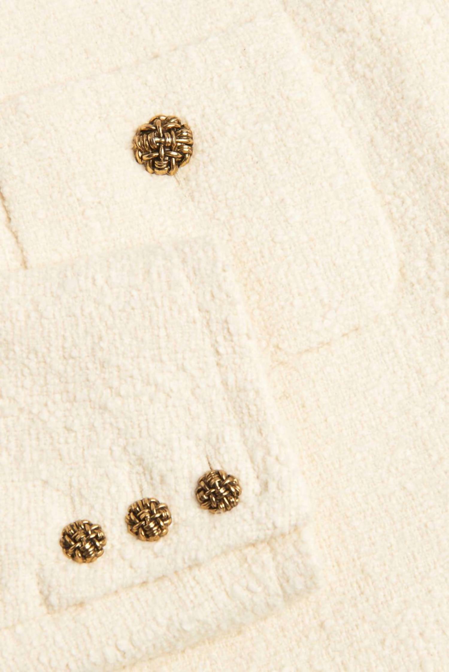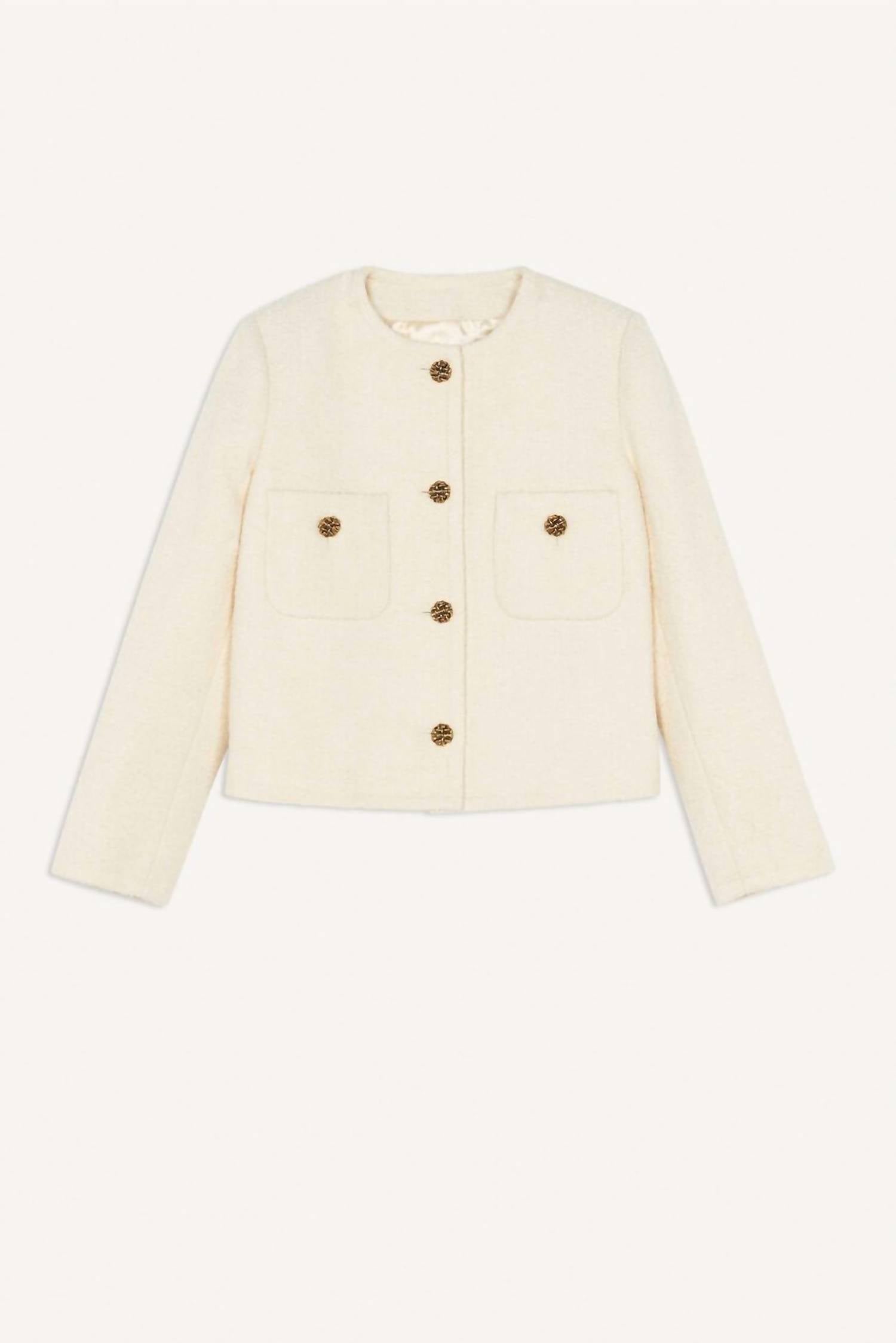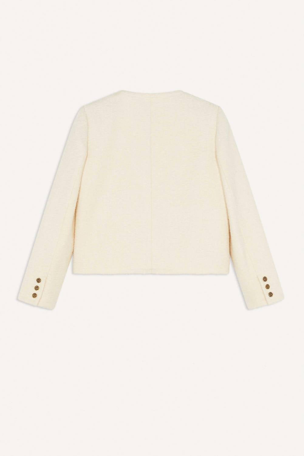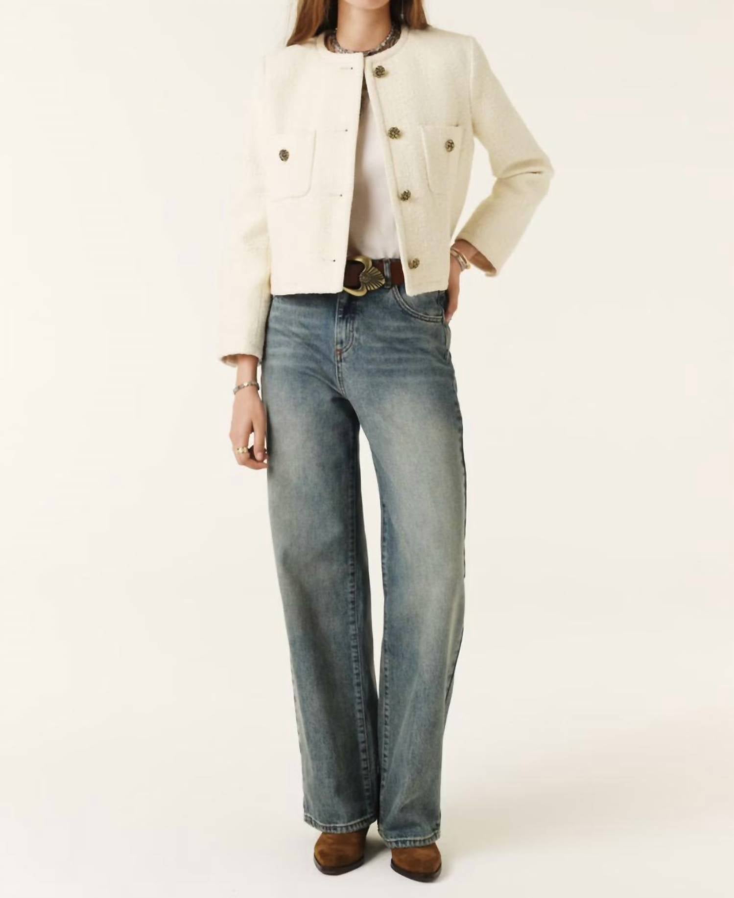 Um blazer tão versátil que você pode usá-lo no escritório ou combiná-lo com jeans para um visual mais casual. Apresentamos a Jaqueta Meredith da ba&sh, um casaco curto chique para o seu guarda-roupa de outono. Com mangas longas em uma luxuosa mistura de algodão, esta jaqueta crua é perfeita para se manter aquecido e estiloso. A jaqueta apresenta uma sofisticada gola redonda e fecho de botões, realçado por elegantes botões dourados, com bolsos funcionais para completar o visual. Cuide desta peça somente na lavagem a seco.