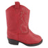 Introducing the Toddler Girl's Miller Western Boot by Baby Deer, a striking western-inspired footwear choice in vibrant red. Crafted with an upper and sole material of PU, this boot features a convenient hook & loop closure and charming pull tabs, complemented by distinctive white stitching. The round toe design in sizes 4 and 5 and a chunky low heel height of 1 1/4"-2" ensure comfort with every step. Perfect for spring or holiday occasions, these boots harmonize practicality with western flair.