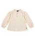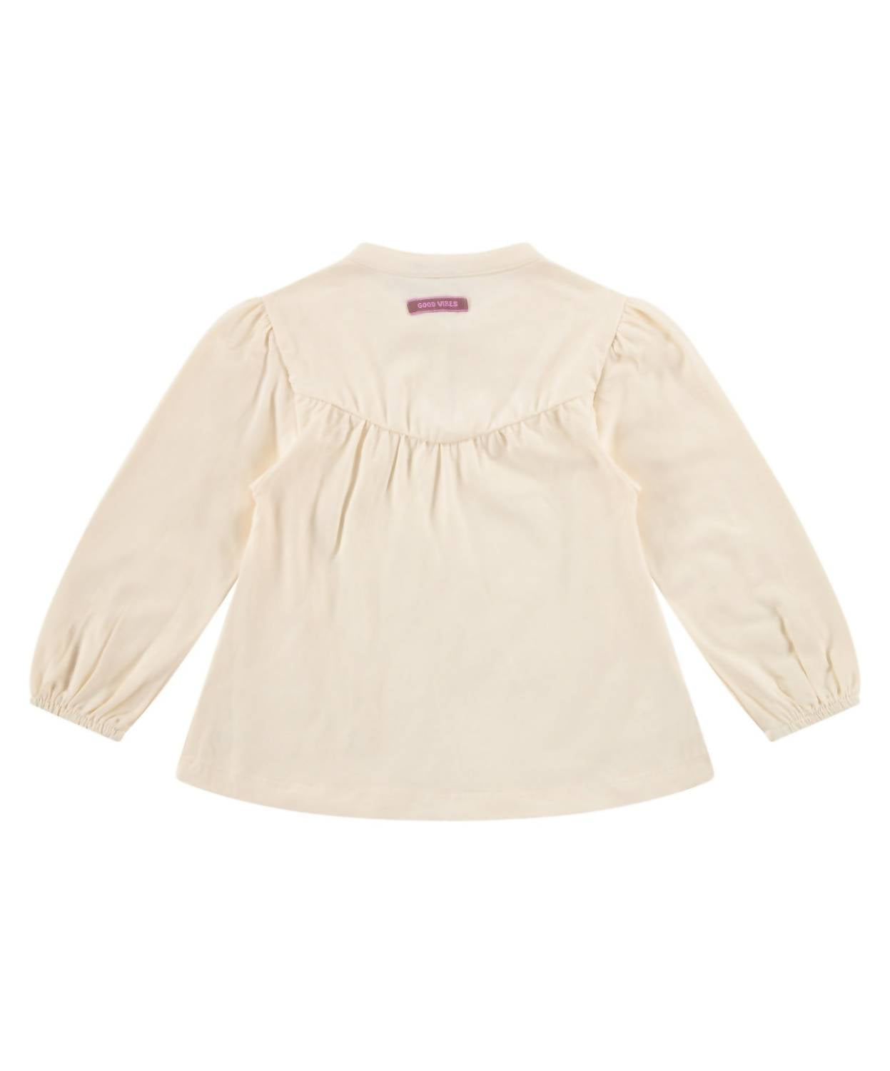 The Girls' Peasant Long Sleeve Tee by babyface is a charming addition to any wardrobe with its minimalist style in a solid creme color. Crafted from a lightweight and breathable cotton blend, this top features long sleeves with elastic-banded hems and delicate ruching detail on tiny puff shoulders. It includes a high neck with a slit opening and a single button closure, enhancing its dressy appeal. Made from 95% BCI Cotton and 5% Elastane, this tee is easy to maintain with machine wash cold, hang dry, and a cool iron inside out for care instructions.