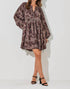 Embrace elegance with the Cleo Printed Floral Baby Doll Dress by Baevely by Wellmade in a dark taupe hue. This dress showcases long sleeves with charming ties and a front tie detail complemented by a V-neckline for a flattering fit. Made from patterned polyester, it features a knee-length full skirt that exudes both comfort and charm, making it ideal for holiday parties. Closure: Tie closure. Care: Hand wash and line dry. Perfect for women seeking a maximalist style.