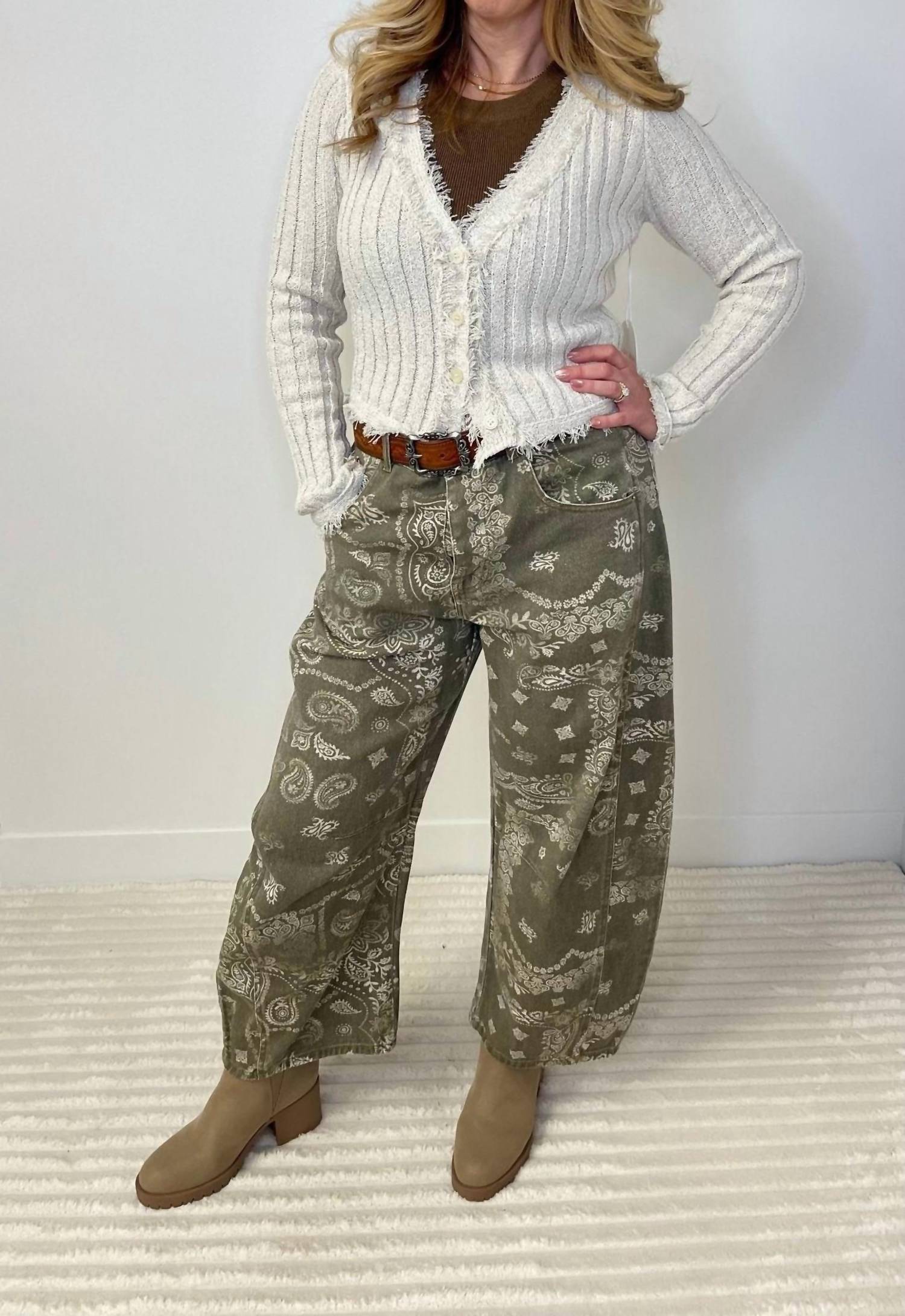 Meet the Feathered Fringe Cardigan by Bailey Rose, a pearl-toned masterpiece perfect for your holiday parties. This long sleeve, fitted cardigan is crafted from a blend of 60% Polyester and 40% Acrylic, offering a textured and luxurious feel. It features a V-neck design with a button closure, elevating its dressy and classy appeal. Care instructions include a delicate machine wash, ensuring easy maintenance for this spring season essential.