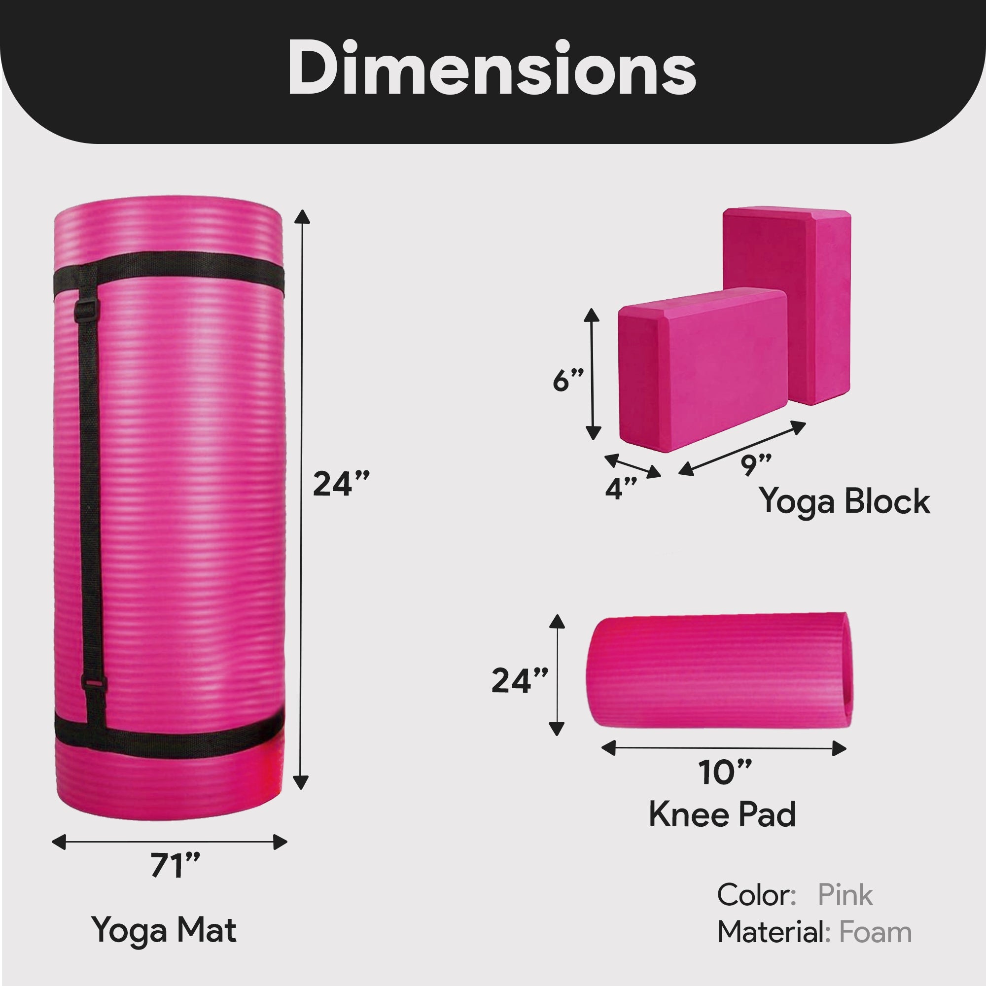 O design leve e a alça de transporte facilitam o transporte deste tapete do estúdio ou academia para sua casa. Inclui joelheira, com dimensões de 60 cm de largura e 25 cm de comprimento, com espessura de 1,9 cm, cobrindo suas articulações com um relaxamento macio durante rotinas extenuantes. Também vem com 2 blocos de ioga esculpidos em espuma robusta de alta densidade para resistir ao teste do tempo.