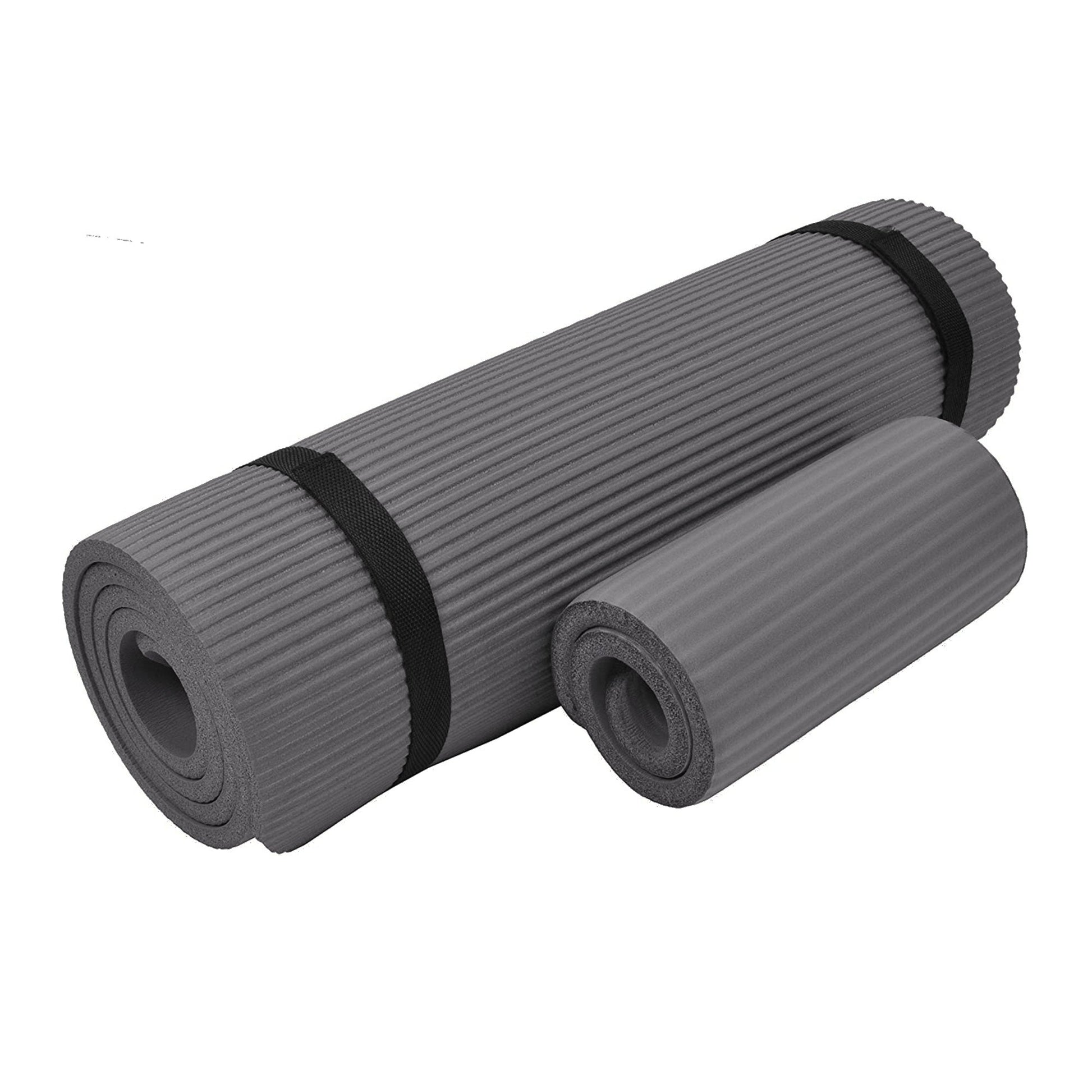 Tapete de ioga BalanceFrom Fitness GoYoga+ 71 x 24 pol. com joelheira e alça, cinza