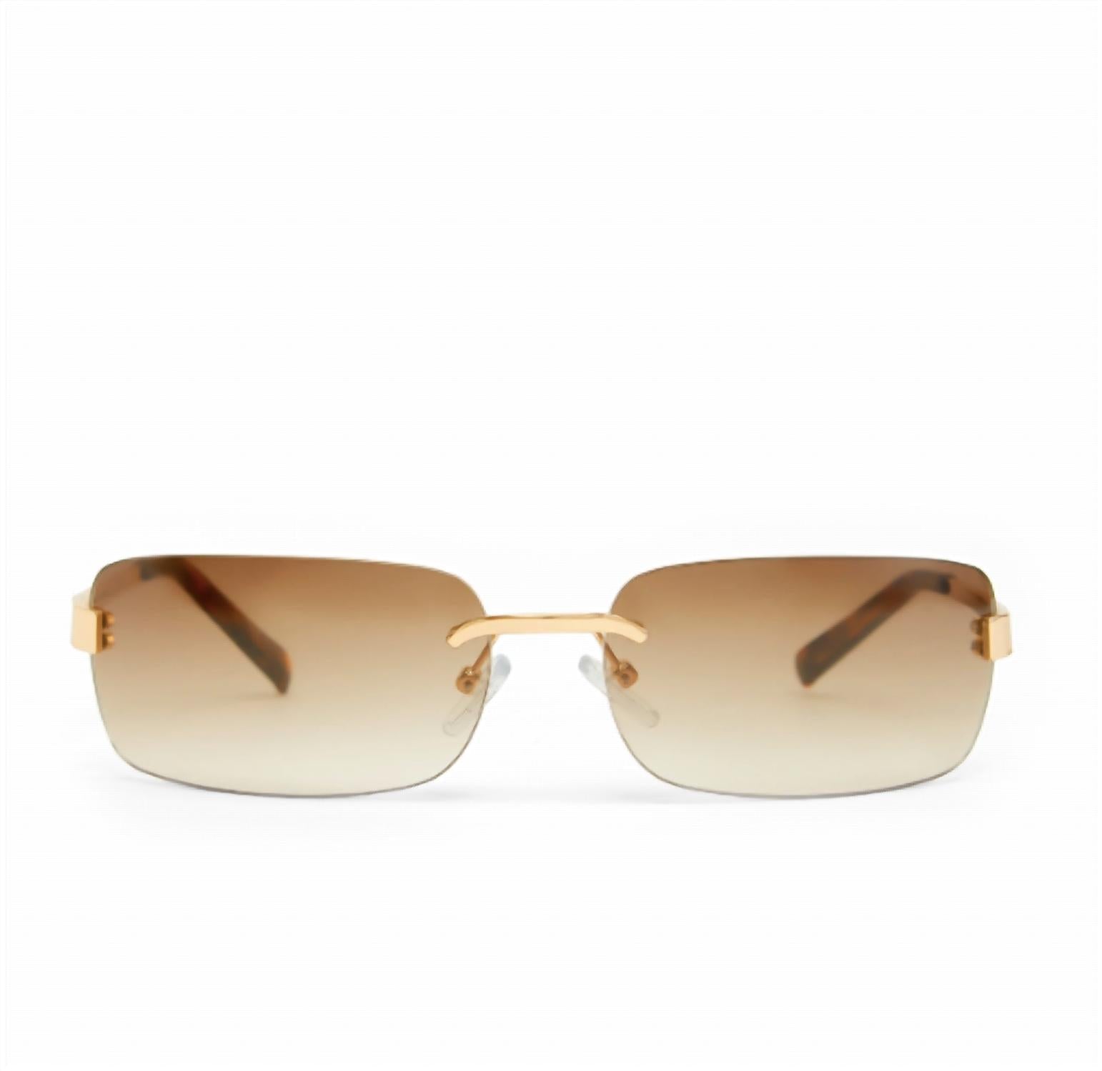 Faça uma declaração e proteja seus olhos com estes óculos de sol modernos e práticos. Agarre estes óculos adoráveis para as suas próximas férias e eleve seus acessórios. Abrace a estética Y-2K com os óculos de sol femininos Hill da Banbé, com design retangular sem armação em um elegante tom dourado. Com hastes e ponte de metal, estes elegantes óculos de sol oferecem resistência a arranhões, lentes polarizadas de categoria 3 e 100% de proteção UV com alta redução do brilho solar. Projetados na Austrália, eles vêm com um estojo vegano da marca e um pano de limpeza. As dimensões incluem largura de 13,7 cm, altura da lente de 3,42 cm, comprimento da haste de 12 cm e ponte nasal de 1,6 cm.