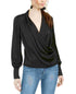 Band Of Gypsies Top feminino de manga comprida com decote em V, preto, tamanho médio