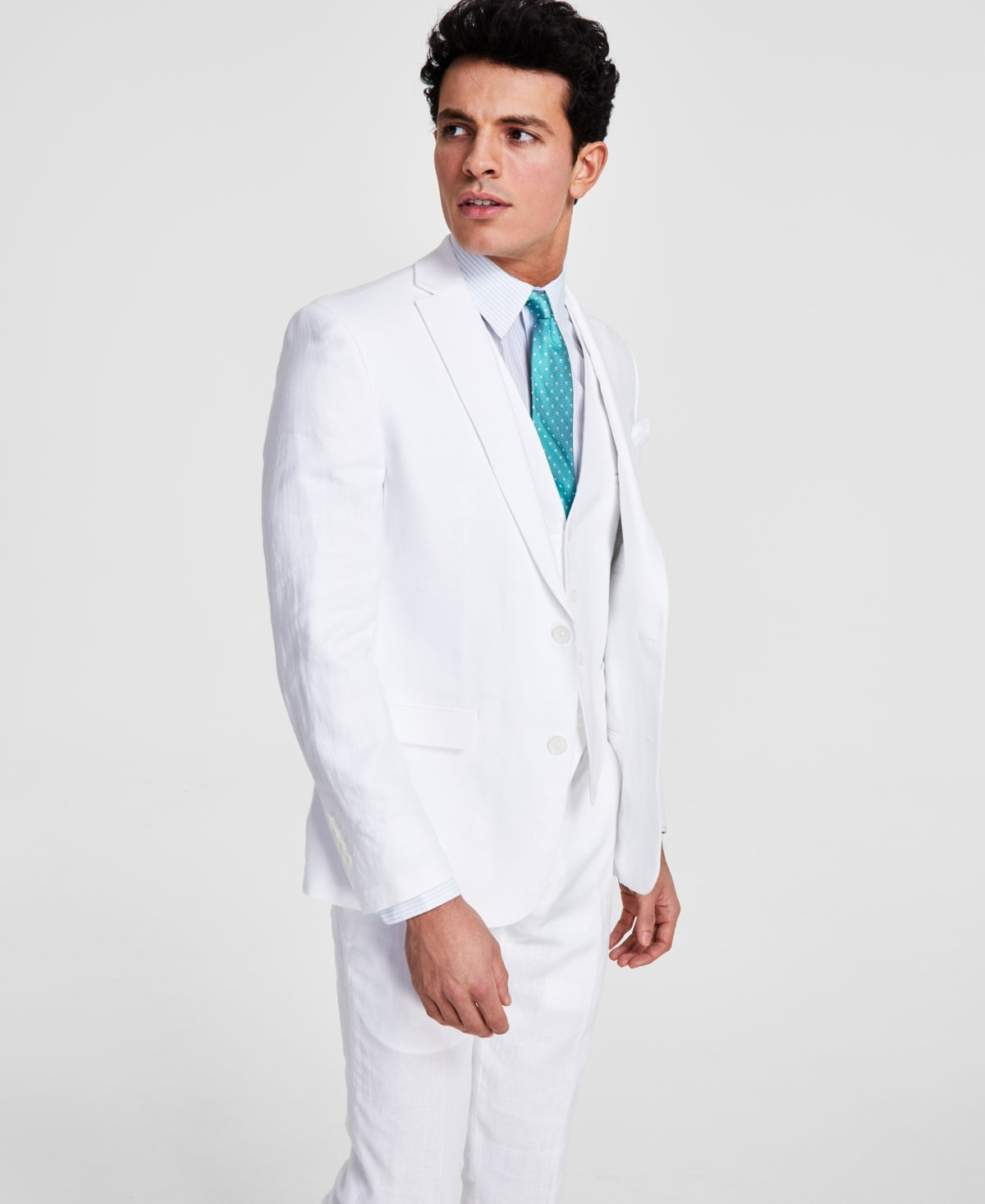 Bar III Jaqueta de linho slim fit masculina, branca, tamanho 46