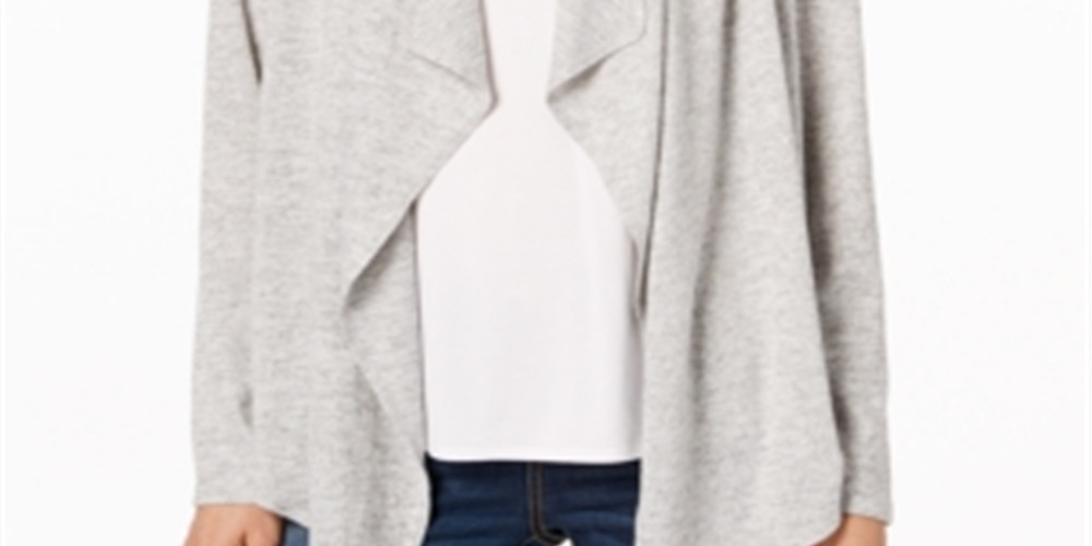 Suéter feminino Bar III com frente aberta e drapeado, cinza, tamanho X-S