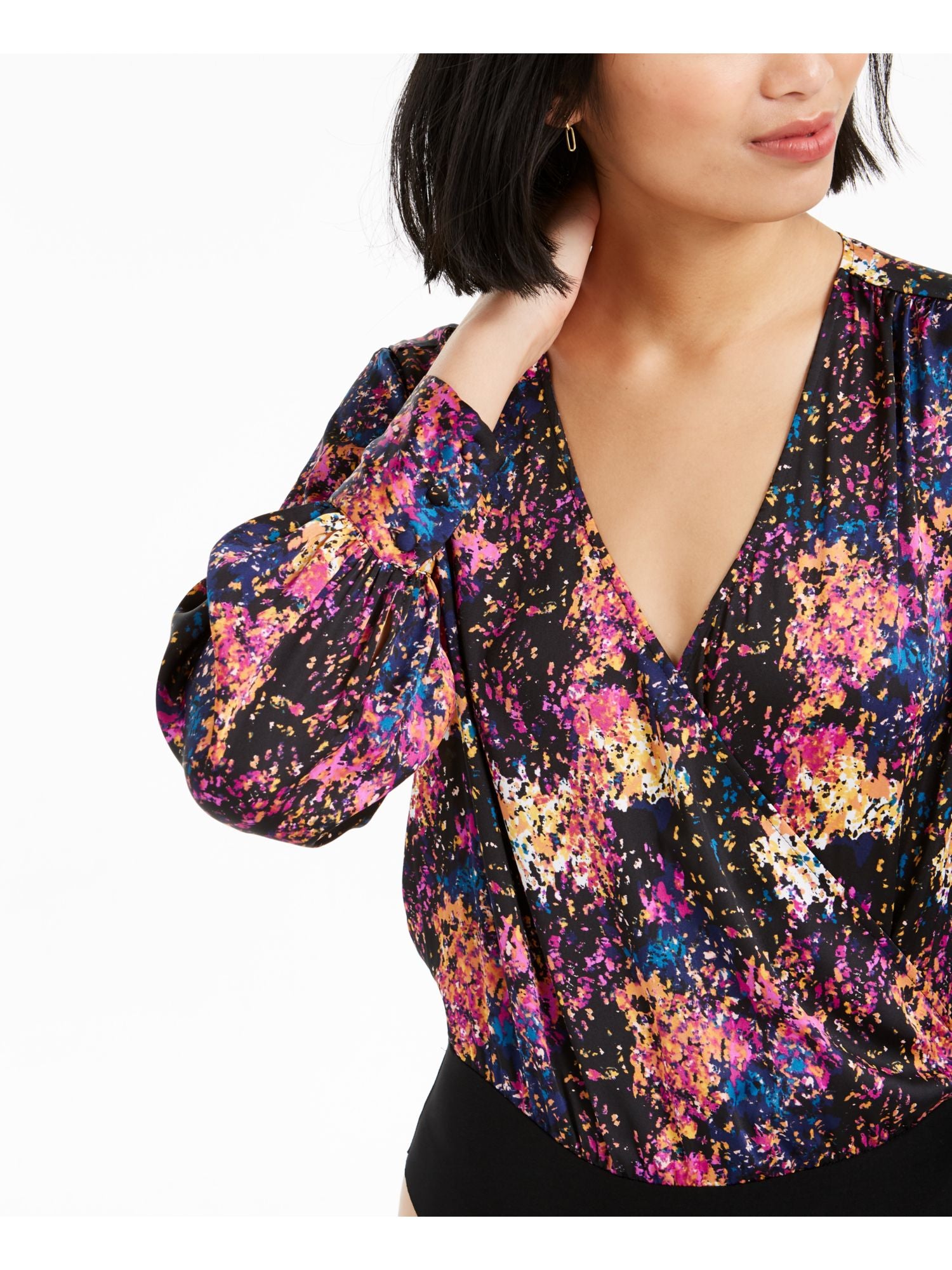 Body feminino Bar III com estampa de envoltório falso, preto, tamanho extrapequeno