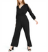 Macacão feminino Bar III com manga fenda e costas em V, preto, tamanho médio