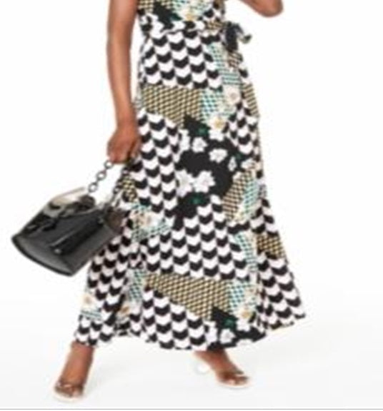 Vestido longo cruzado BAR III feminino com alças finas, preto, tamanho XL