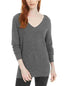 Blusa feminina Bar III Twist de manga comprida e decote em V, cinza, tamanho X-S