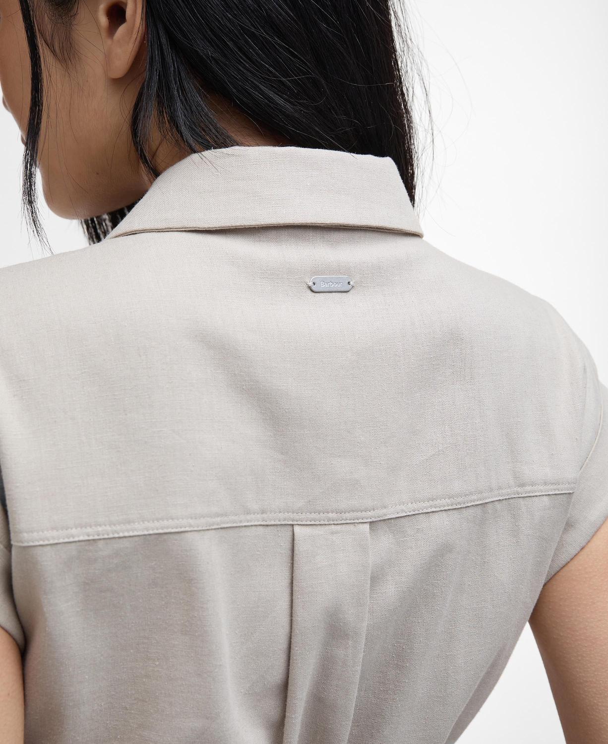 Introducing the Barbour Birdie Maxi Dress in Light Sand, the perfect minimalist addition to your fall travel wardrobe. With cap sleeves and a shirt dress silhouette, this piece features a chic button closure and a self-tie belt for a tailored fit. Crafted from a luxurious blend of 70% cotton and 30% linen, its practicality is enhanced by in-seam pockets and two chest pockets. This solid-patterned dress is easy to care for with machine wash cold instructions.