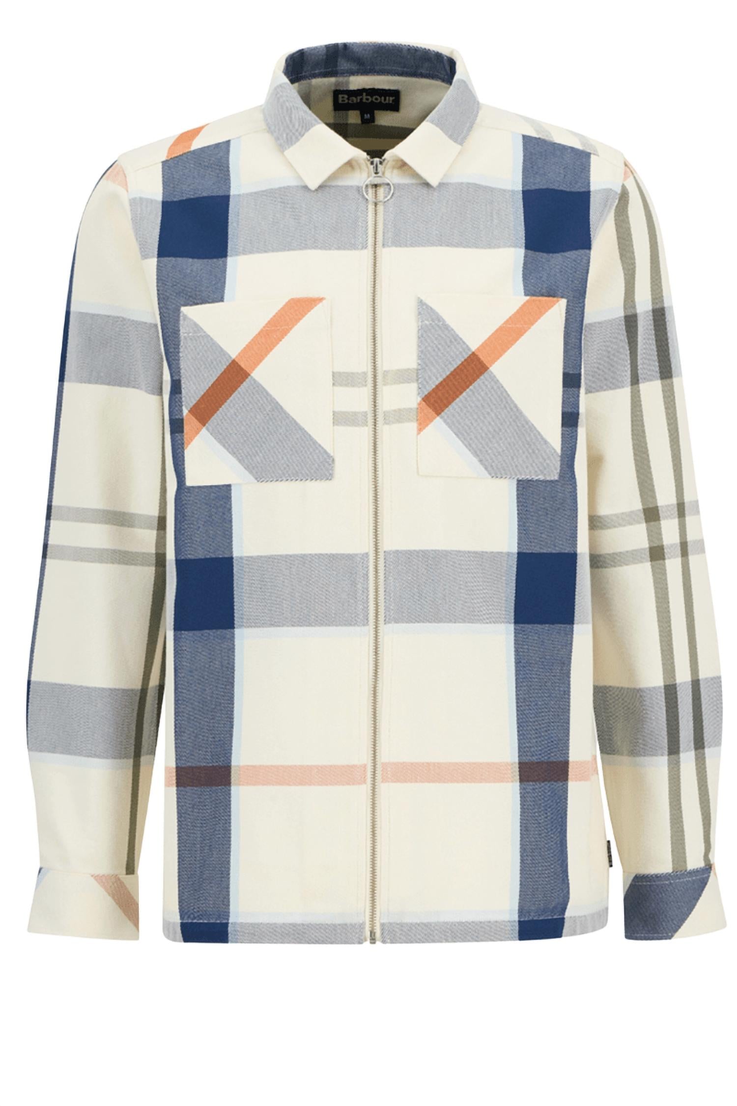 Introducing the Ettrick Overshirt by Barbour in Sea Haze, a stylish addition to your fall wardrobe. This lightweight shirt jacket features long sleeves and a classic collar, with a trendy large-scale Sea Haze tartan pattern. Crafted from 100% cotton twill, it boasts a soft finish and practical zip closure, complete with patch pockets at the chest. Care for this men's piece involves machine washing.