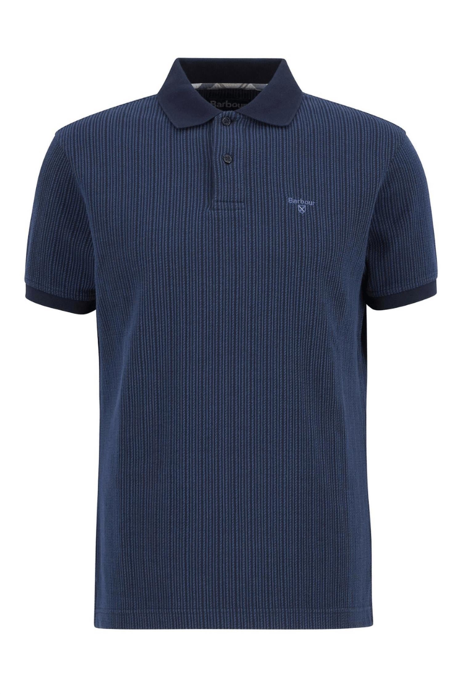 Introducing the Harworth Polo Shirt by Barbour, an essential piece for the modern man's wardrobe in classic navy. With short sleeves and a comfortable cotton blend featuring 71% Cotton and 29% Polyester, this shirt offers both style and ease. It sports a textured tonal striped pattern, ideal for smart-casual settings. Originating from Barbour, it features a pull-on closure and is perfect for Easter and dinner parties, with easy care instructions: machine wash and tumble dry.