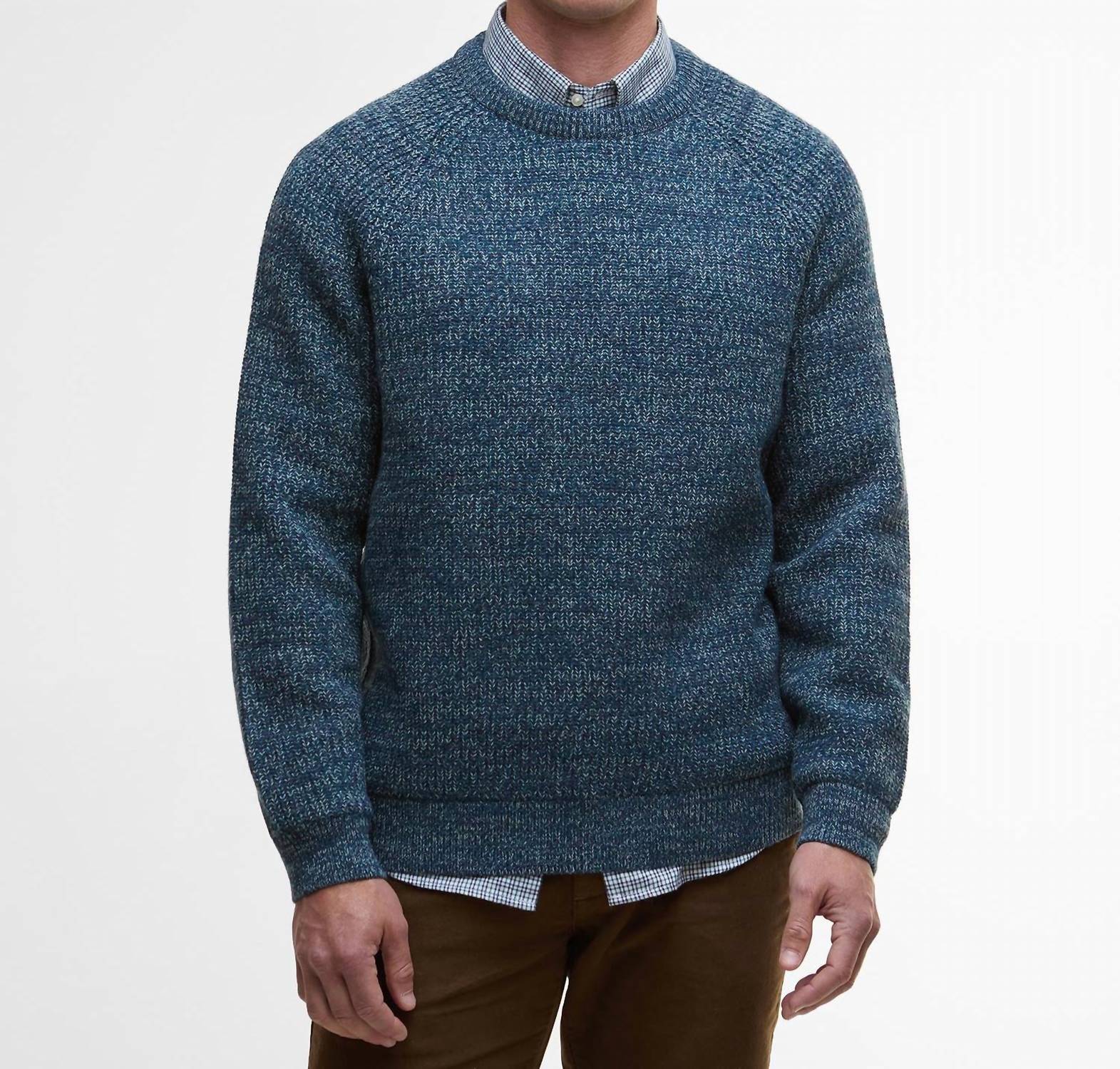 Elevate your smart-casual wardrobe with the Barbour Horseford Crew Neck Jumper, an exquisite piece in mallard green. Made from 100% lambswool with a textured pattern, this long-sleeve jumper promises warmth and sophistication. With dimensions of 67cm to 73cm in back length, its ribbed trims and pull-on closure ensure a comfortable fit. Care for your new staple with hand washing at 30°C for lasting quality.