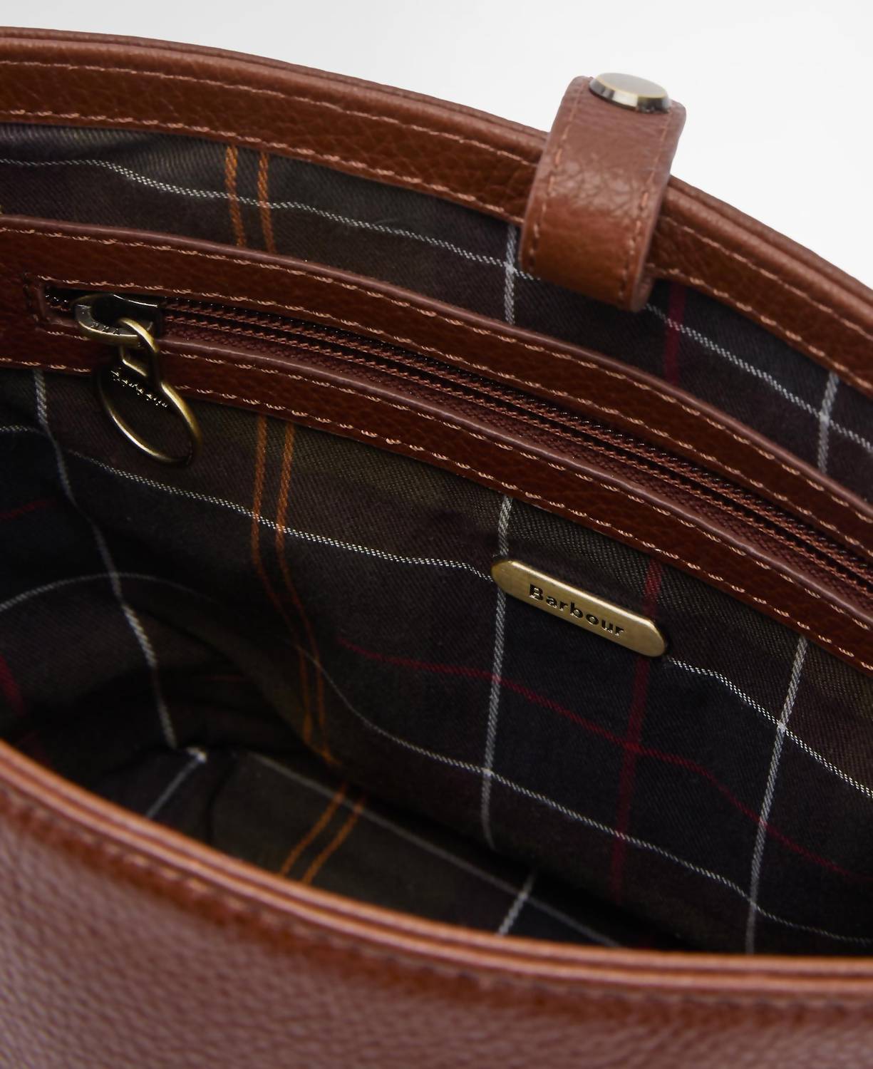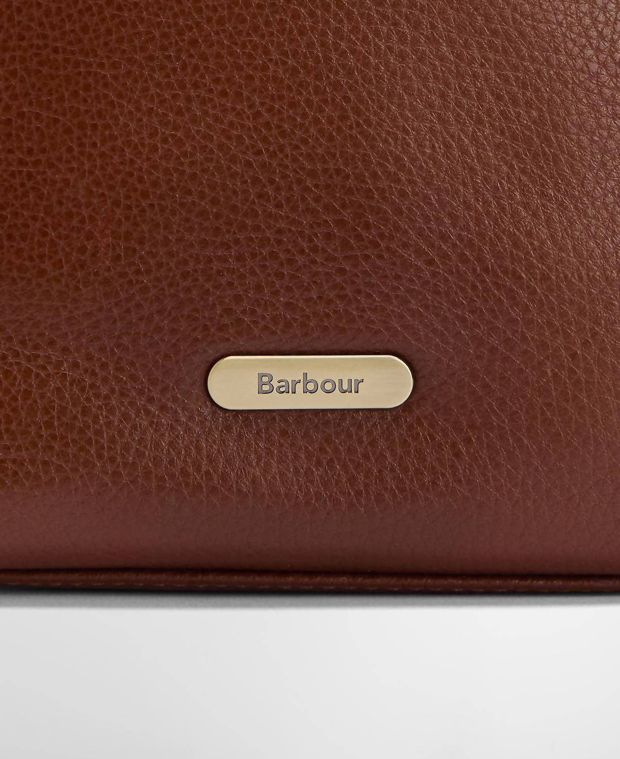 The Barbour Women's Cedar Leather Bucket Bag exudes timeless elegance with its full grain leather construction and classic tartan trim interior. It features an elegant slouchy design for a casual look and a concealed collar stud closure. The bag's practical dimensions—22cm in height, 23.5cm in width at the top, and a 12cm depth—make it perfect for everyday essentials. Finished with Barbour's signature details including matte gold effect metal hardware, it requires only a simple wipe clean to maintain its sophisticated brown finish.