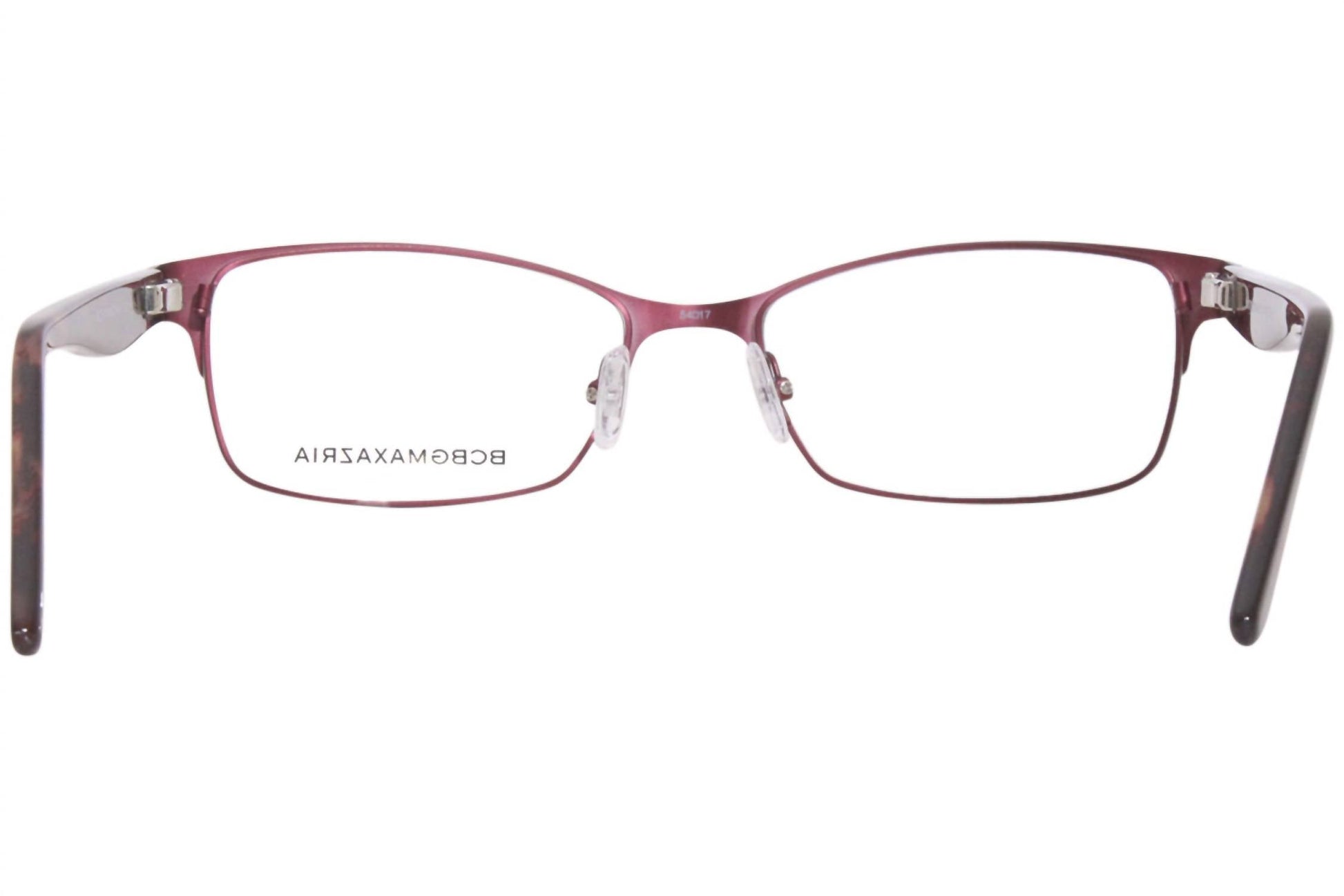 Introducing the Women's Brynn Eyeglasses by BCBGMAXAZRIA, a chic choice in a stunning wine hue. With a full rim cat eye style, these glasses ensure you make a statement. The frame is crafted from high-quality metal, offering durability and style. Lens width is 54mm, bridge size is 17mm, and temple length is 135mm, designed specifically for women seeking elegance and comfort.