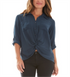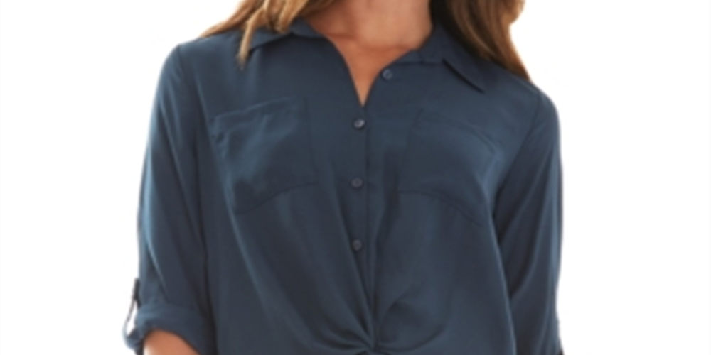 Camisa BCX Junior com detalhe de torção e botões frontais, azul, tamanho pequeno