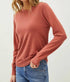 Elevate your fall wardrobe with the Crew Neck Sweater by Be Cool, perfectly crafted for cozy adventures. This long sleeve knit sweater in a rich Brick hue offers the ideal weight for layering under shackets or wearing alone with jeans during camping trips. Embrace its solid pattern and comfortable pull-on closure for effortless style. Perfect for Thanksgiving gatherings, this women’s sweater features a classic crewneck and makes a versatile addition to your wardrobe.
