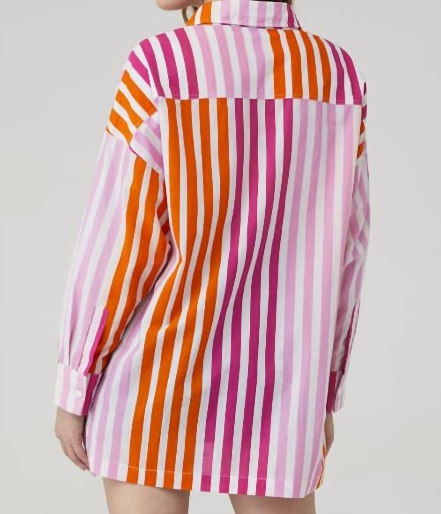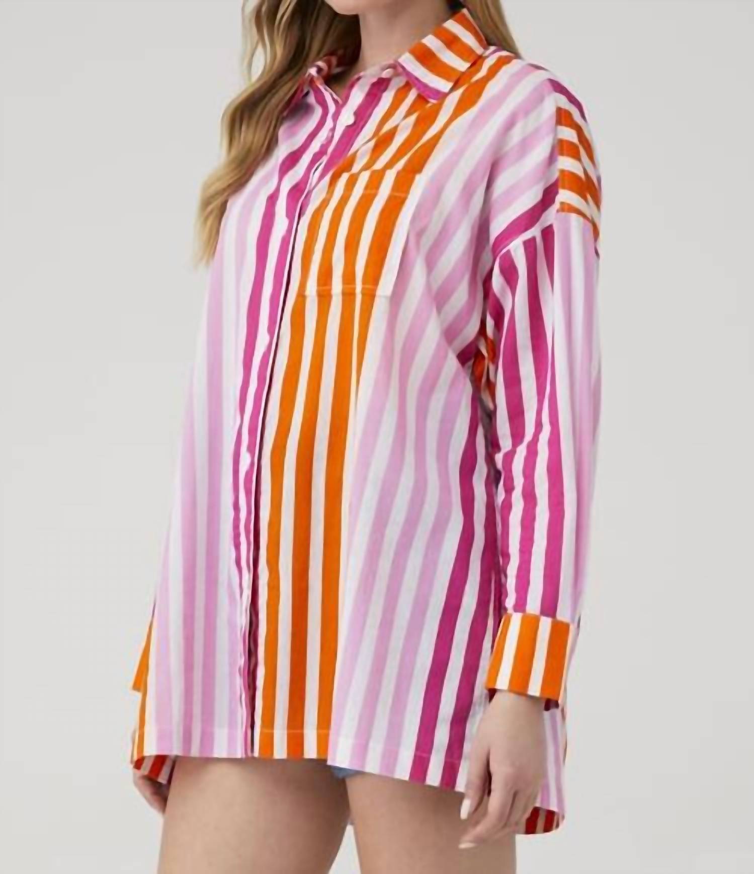 Apresentamos o Top Alexa da Beach Riot, uma peça vibrante com listras em tom de pôr do sol, perfeita para suas viagens de primavera. Esta camisa leve com botões apresenta mangas compridas e um decote clássico. Confeccionada em 100% algodão, oferece conforto respirável com fecho de botão para facilitar o uso. As instruções de cuidado incluem lavagem à máquina e secagem na horizontal.
